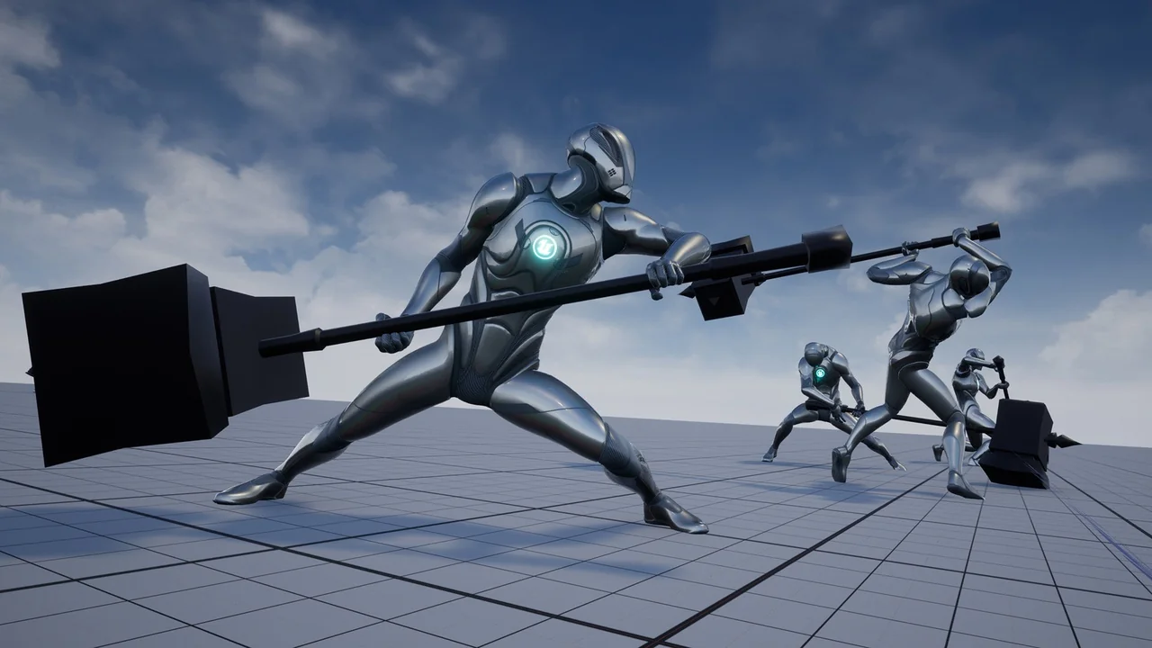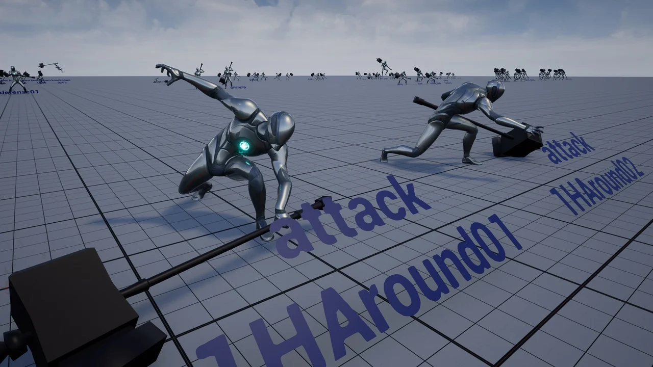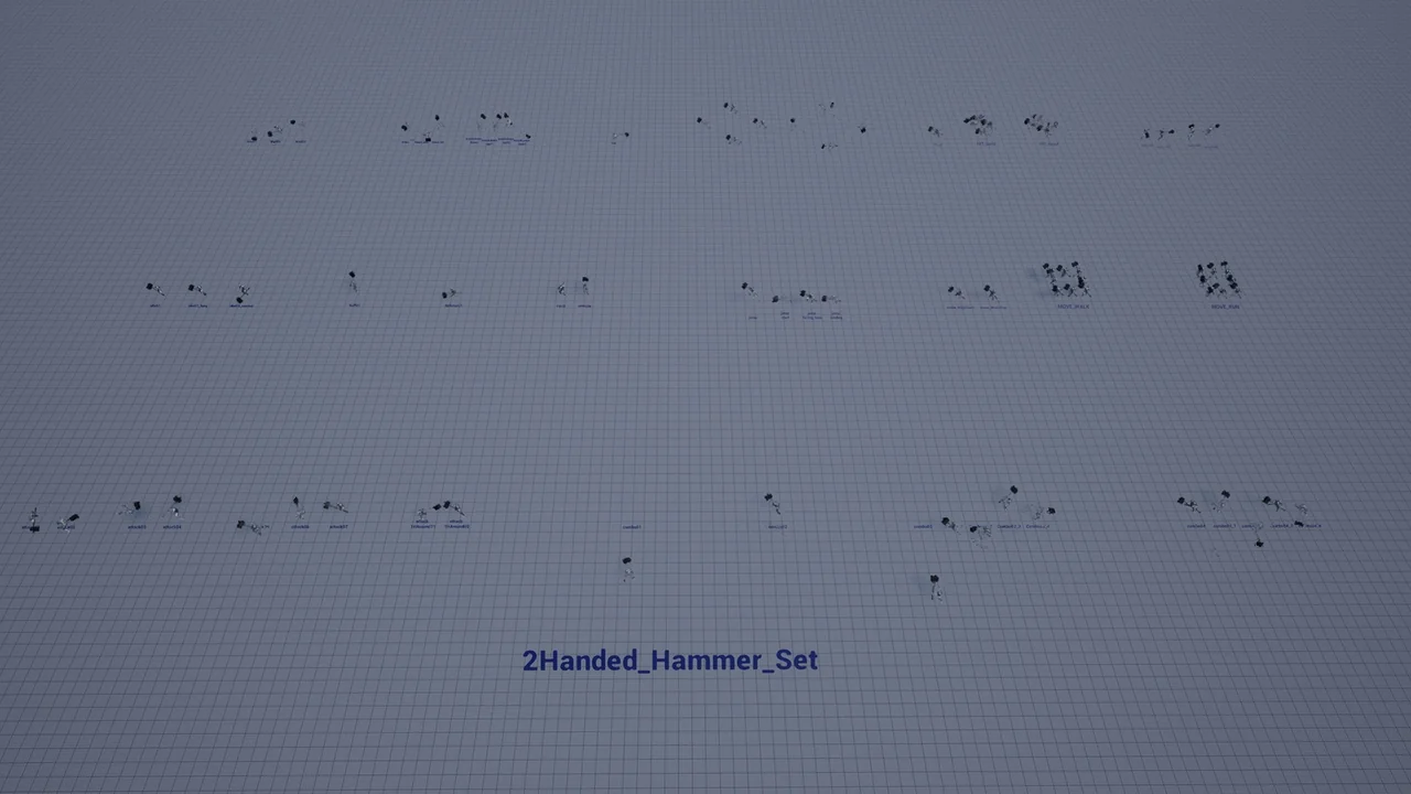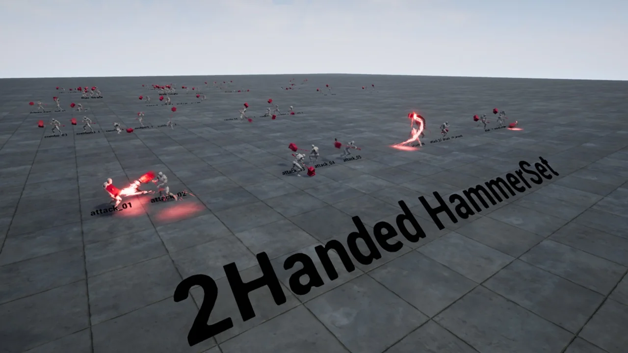 2Handed Hammer AnimSet gives a clear visual identity to characters who fight with a two-handed hammer or axe. The motion style matches action RPG scenes where a barbarian or heavy warrior needs to feel grounded, forceful, and hard to stop. Instead of quick, light exchanges, the emphasis here sits on weight, reach, and the sense that every swing carries real impact.
