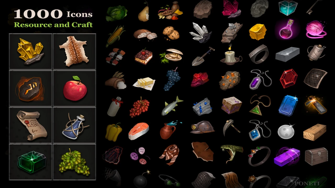 The art direction is designed to be flexible. These icons blend seamlessly into both cartoon/stylized interfaces and realistic graphical settings, making them perfect for a wide range of genres. - Developer-Friendly Organization: