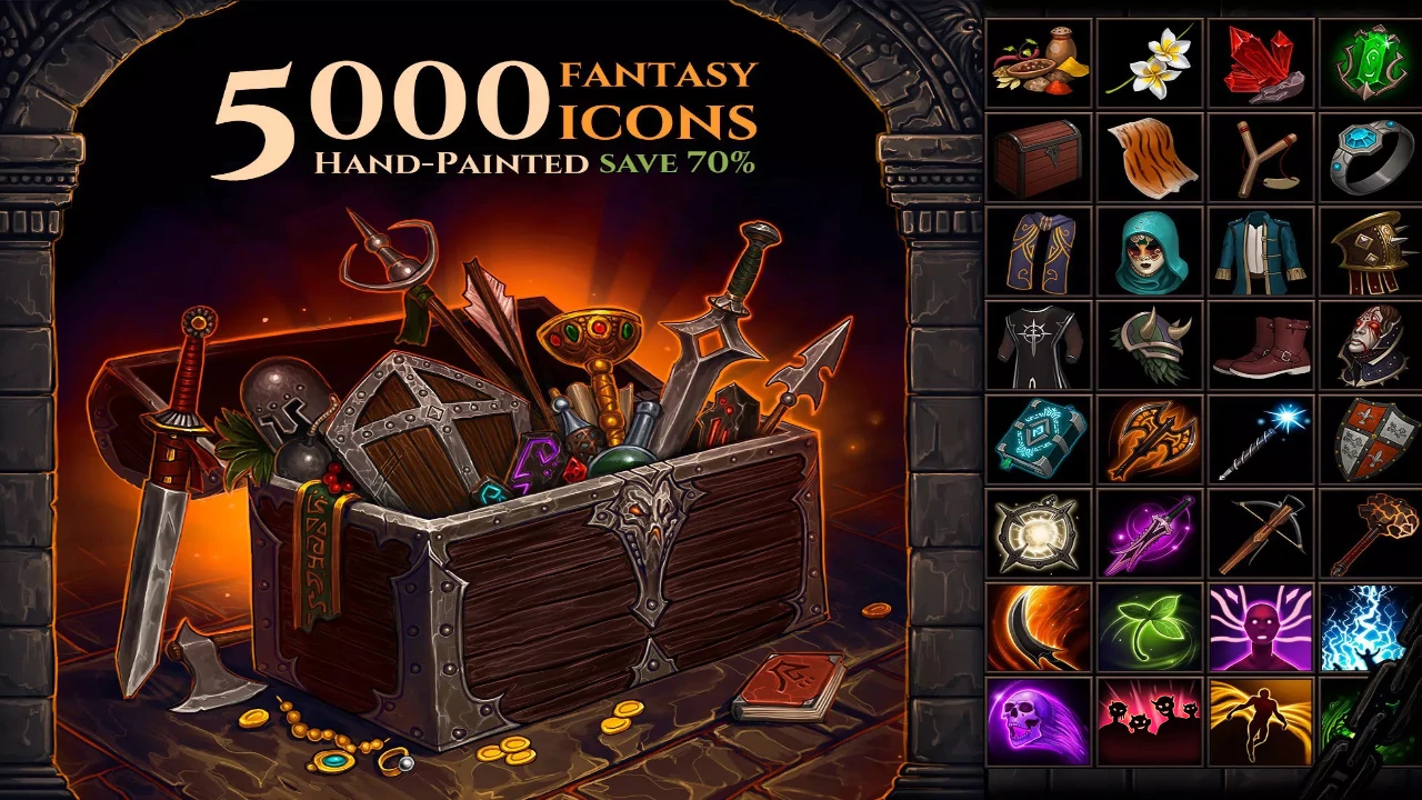 5000 Fantasy Icons is the definitive solution for developers who refuse to compromise on quality. Stop wasting time hunting for individual assets and secure a lifetime supply of professional, hand-painted UI art.