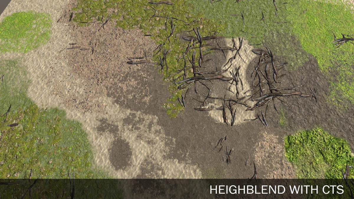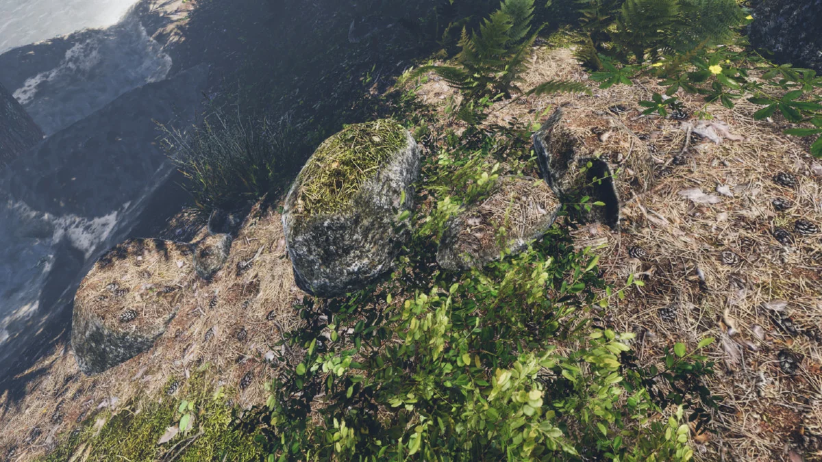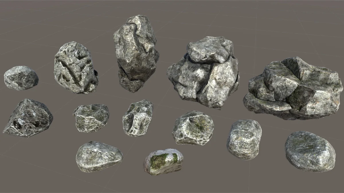 The standout feature of this package is its shader system, which allows for a 1:1 blend between the rock models and the terrain textures. This capability is essential for environment artists looking to eliminate the harsh, artificial lines that often appear where a 3D mesh intersects with a terrain heightmap. By using the included shaders, models can be integrated into the landscape so they appear as a natural extension of the ground surface.
