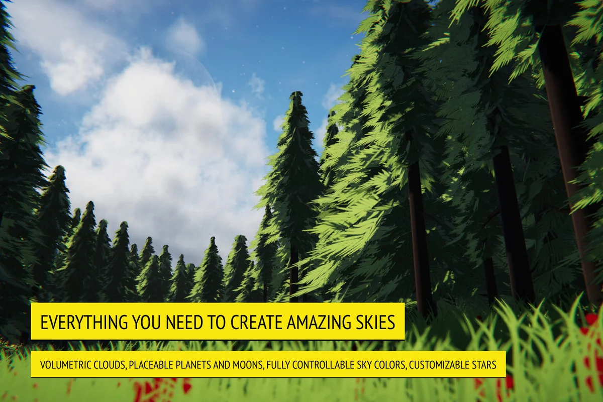 The package also supports the idea of a daytime simulation under the player’s control. That makes it useful when the sky needs to support gameplay pacing, environmental storytelling, or a scene that changes over time rather than remaining static.