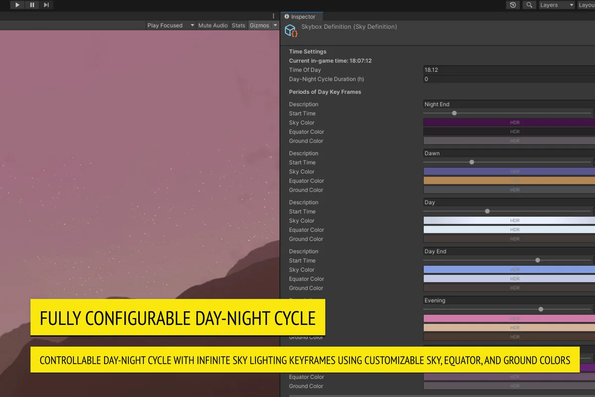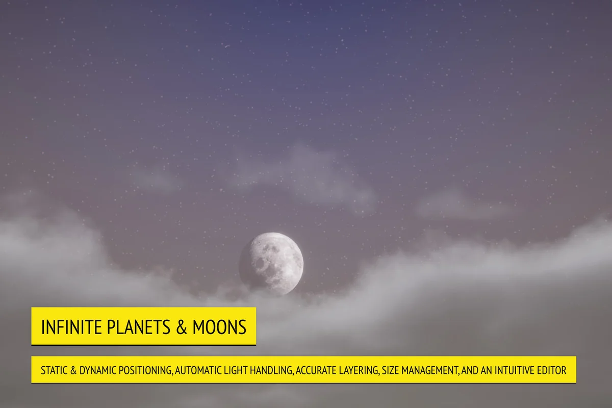 That matters for projects that rely on time passing inside the scene. A realistic astronomical simulation gives the sky a clear sense of motion, rather than leaving it frozen in one state. Because the procedural skybox works with these changes, the sky is set up to move through different conditions instead of staying locked to a single lighting moment.