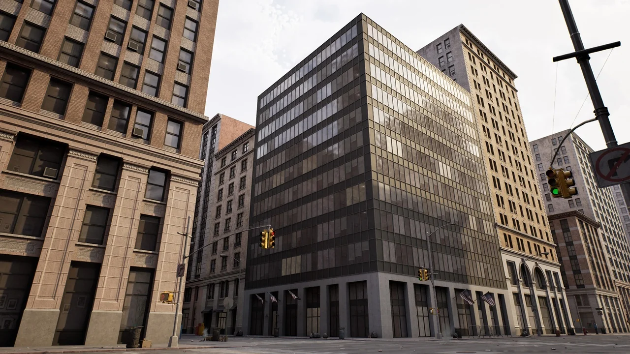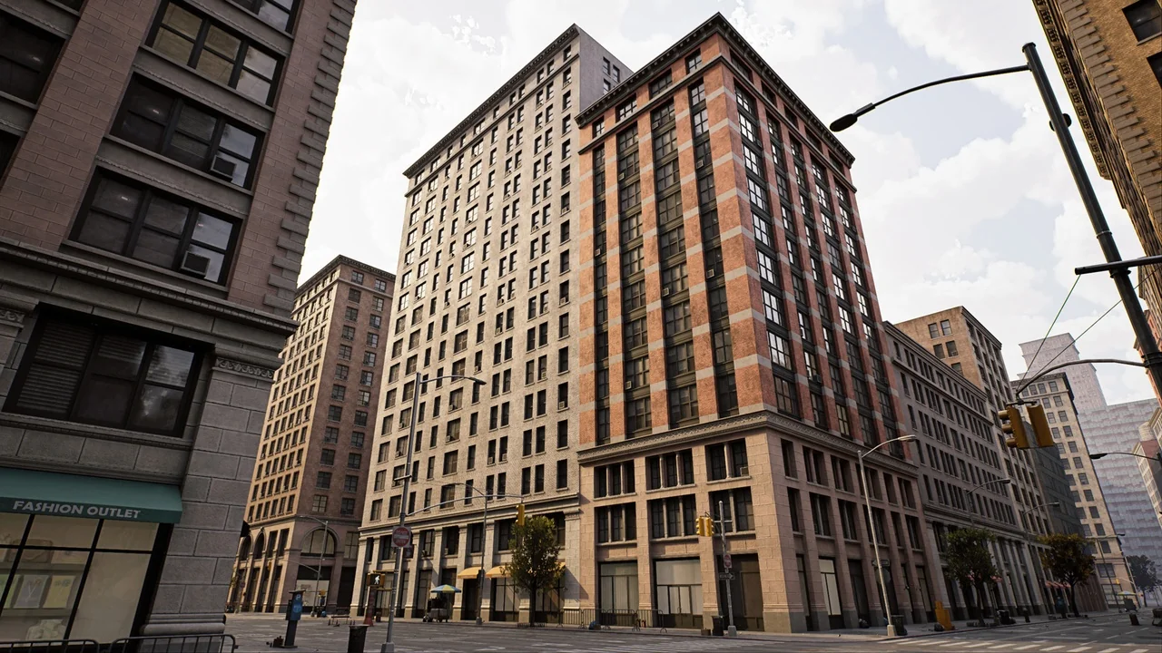 The overall tone of the pack is practical rather than decorative. It is aimed at creating large areas with control over the final look, and the material setup is flexible enough to allow broad customization. The city style is inspired by New York City, with references to Manhattan, Midtown, Brooklyn, and Queens, which gives the bundle a dense American urban identity that can carry across central blocks, outer neighborhoods, and heavier industrial zones.
