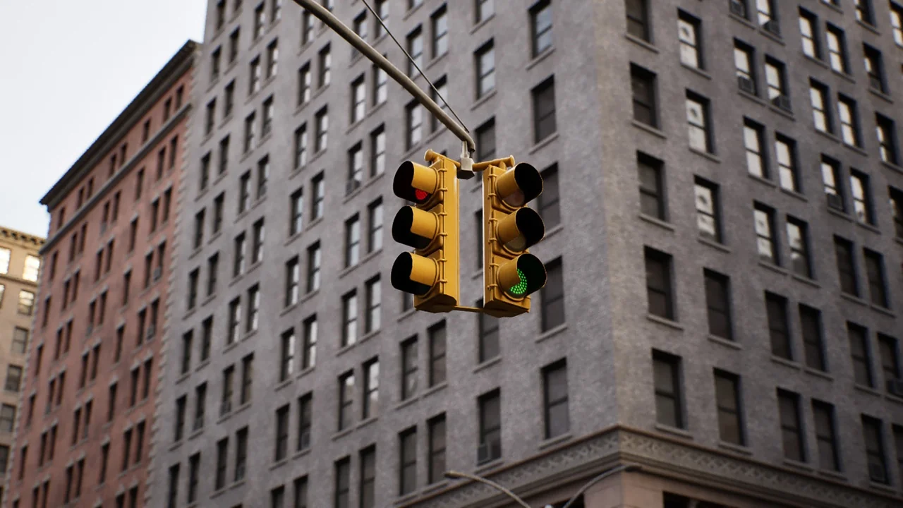 Textures range from 1024×1024 to 4096×4096 and use PNG format. Physical material textures include base color, metallic, roughness, and normal maps. That gives the pack a straightforward material structure for use in a broader production pipeline, especially where the same city assets may need to be reviewed, adjusted, or exchanged across different scenes.
