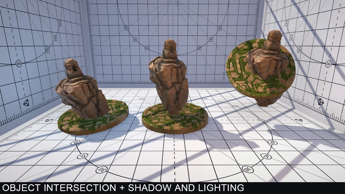 The impostors are not limited to standing in place as passive stand-ins. They can be moved, rotated, and scaled, and they can receive and cast shadows. They can also intersect other objects or other impostors, which is important when a scene needs simplified assets to sit convincingly among fuller geometry. Depth-write support is included for object intersections, and full lighting and shadowing are available, with lightmaps excluded.