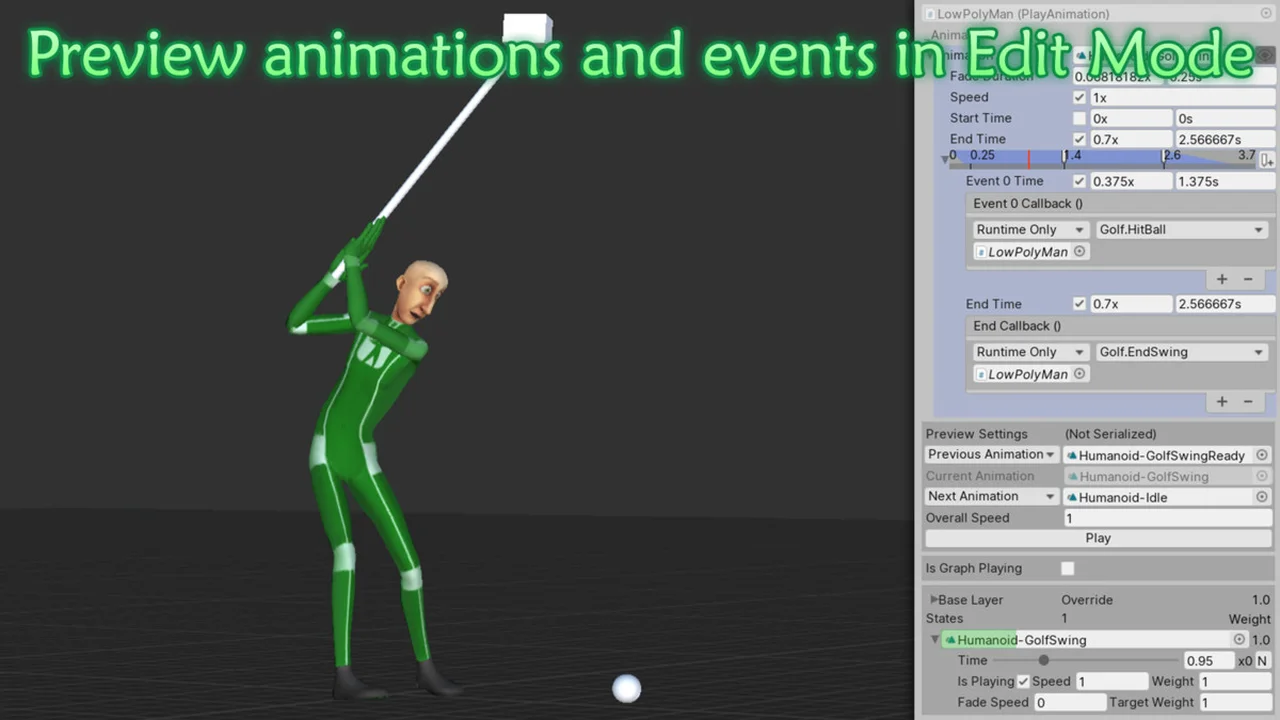 Animancer allows you to play animations on-demand and control all their details without any additional setup steps. It solves the major problems with Animator Controllers and can either replace them entirely or work alongside them. This makes animations much easier to work with in all stages of development from basic prototyping through to maintaining and debugging complex systems.