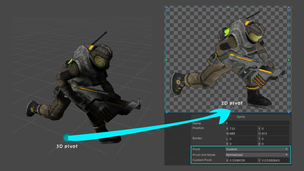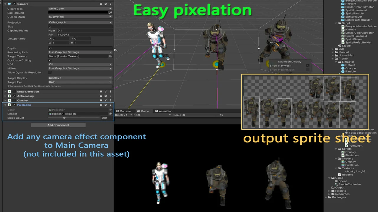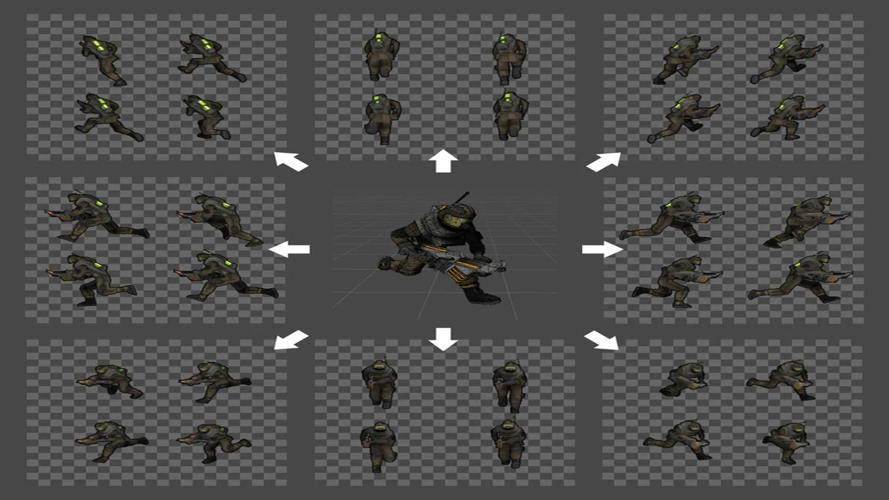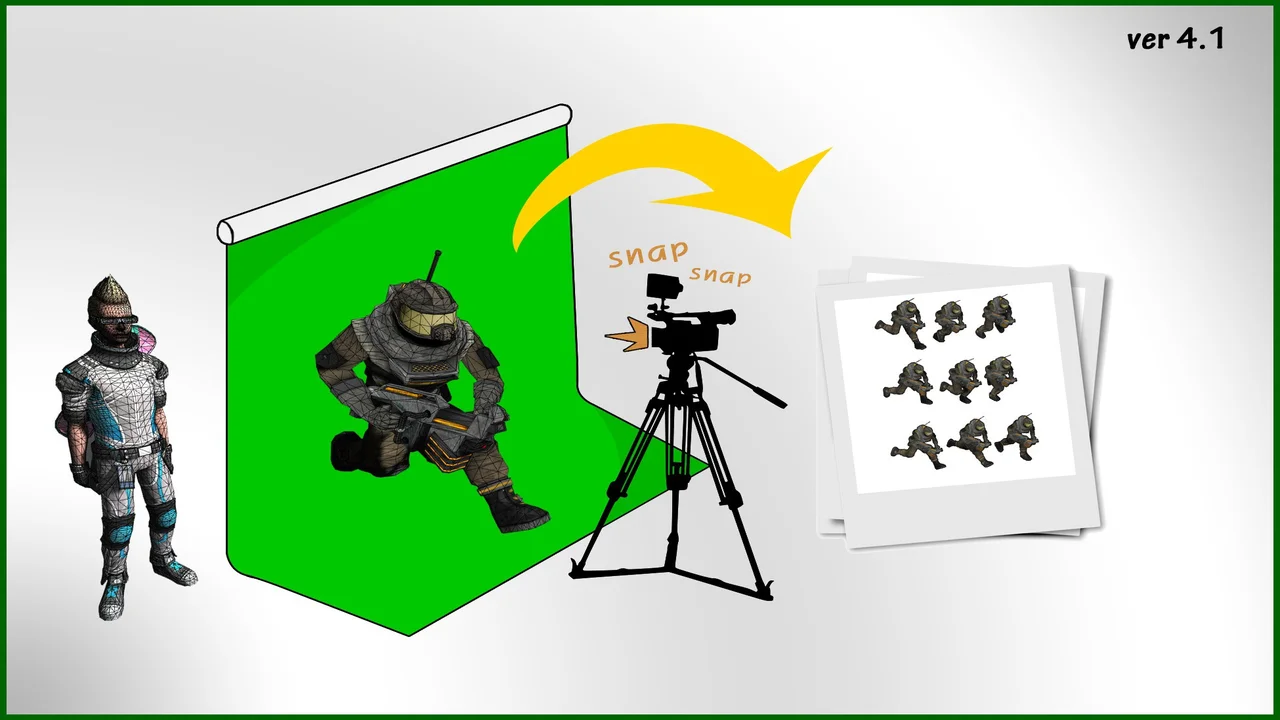 You can take pictures of various 3D models in various directions. Output files are sprite sheets, animation clips, normal maps, and etc. that can be used for 2D or 2.5D games.