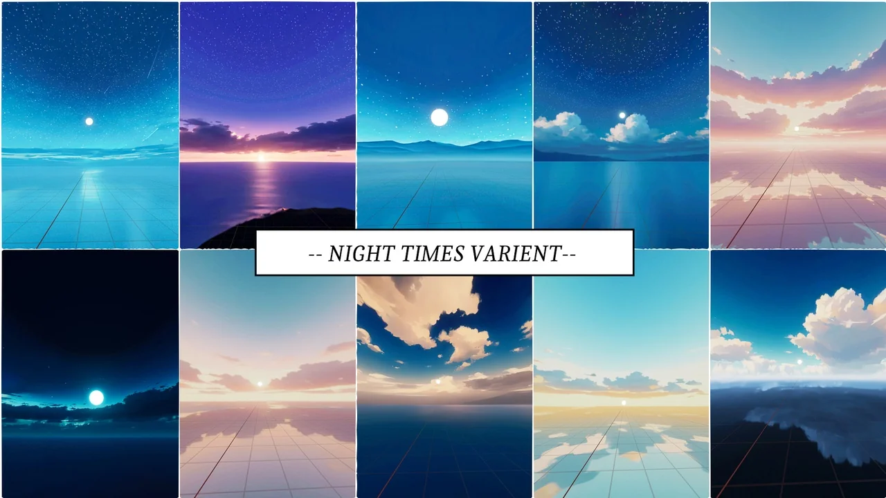 In summary, ANIME SKYBOX V3 is a versatile resource for any developer working with stylized or anime-inspired visuals. It offers a balanced mix of day and night variations to suit various narrative needs. Furthermore, its optimization for low-performance rendering makes it a practical choice for diverse platforms. By using these 20 skyboxes, you can create beautiful, immersive skies with ease.