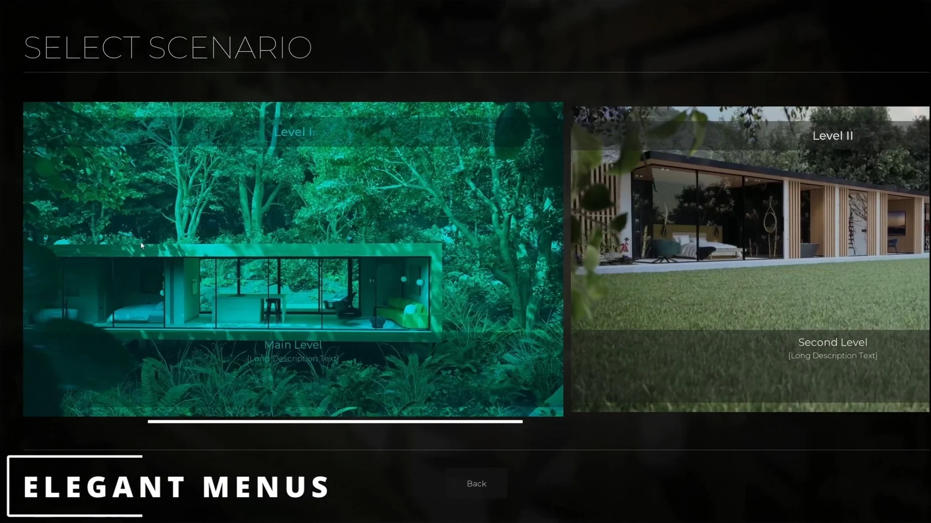 The package includes quick scene setup for the main menu and main level, which helps when a project starts from a blank Unreal Engine scene and needs to reach a usable walkthrough without building every system by hand. The focus stays on the practical pieces that support architectural visualization: a clean look, production-ready materials, and the core interaction structure that holds the scene together.