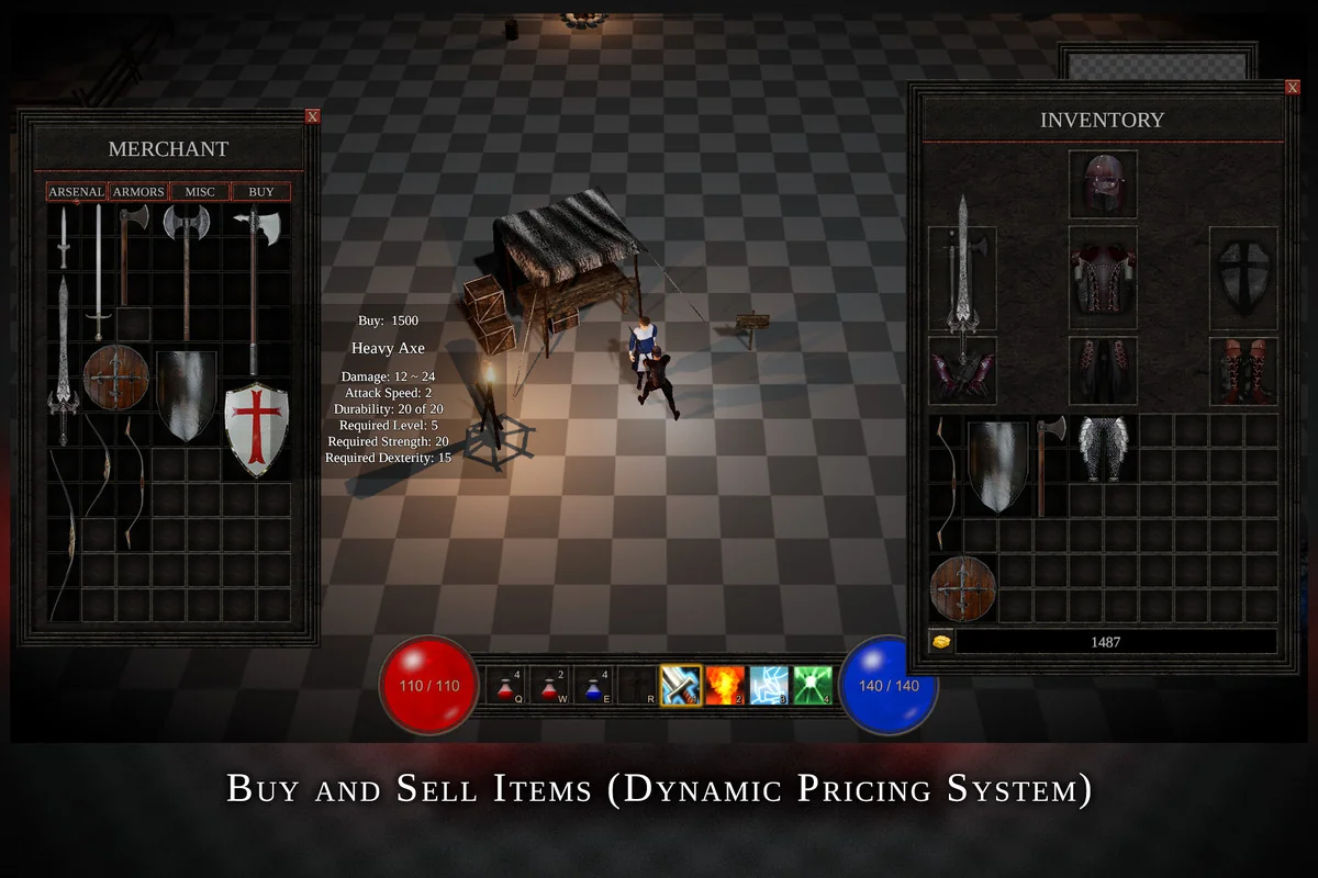 To populate the game world, the ARPG Project includes several interactive systems. A basic dialogue system facilitates NPC communication, while a quest system provides structure for objectives and rewards. Specific NPC roles are pre-configured, such as Merchants for buying and selling goods and Blacksmiths for repairing damaged equipment. Enemy AI is also included to provide immediate opposition within the environment.