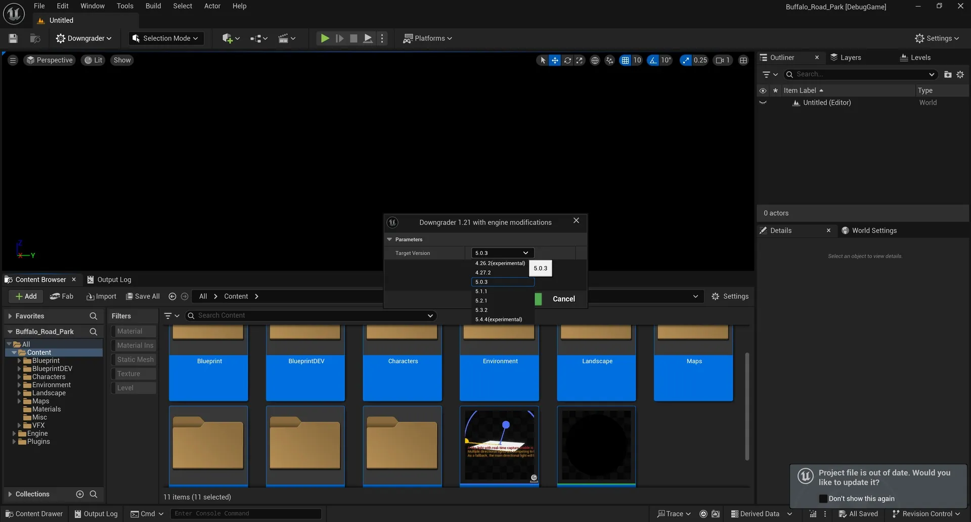Asset Downgrader will downgrade assets to 5.5.4, 5.4.4, 5.3.2, 5.2.1, 5.1.1, 5.0.3, 4.27, 4.26 . It works by first upgrading the assets to Source Version (5.3-5.6), and then applying various patches to the .uasset files in order to make them compatible with the TargetVersion, just without the newer data (i.e. nanite data is removed for a 4.27 downgrade). Do note that features of the newer unreal versions (like nanite on masked materials, new material nodes, new niagara modules) can’t be ported to the old versions.
