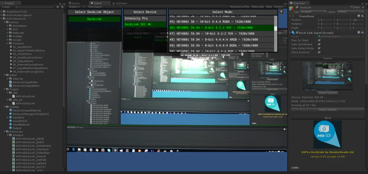 AVPro DeckLink adds native support for Blackmagic Design’s DeckLink hardware to Unity on Windows. It fits the point in a production workflow where Unity has to move video to and from dedicated hardware rather than stay inside standard media playback.