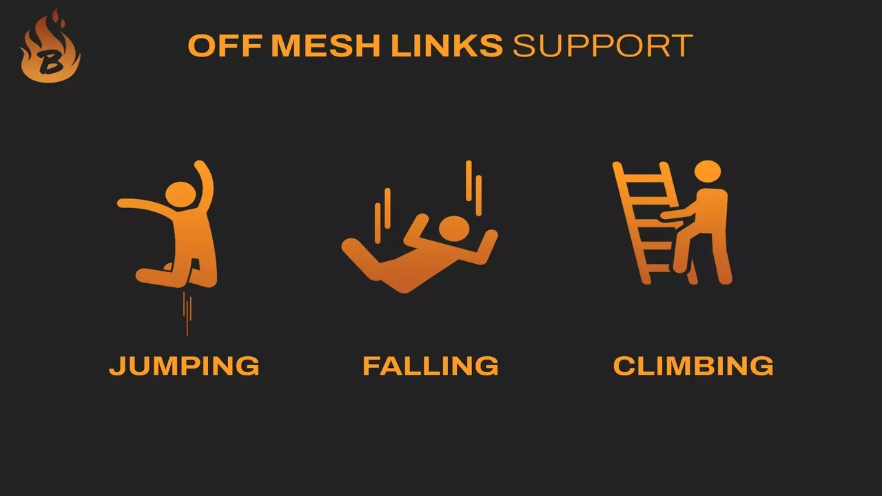 - Blaze AI is proudly the first and only AI on the store to support off mesh links with an incredibly smart integration that can be dynamically turned on or off. Blaze AI agents can jump, fall and climb ladders. Also works with animation root motion and AI companions too!