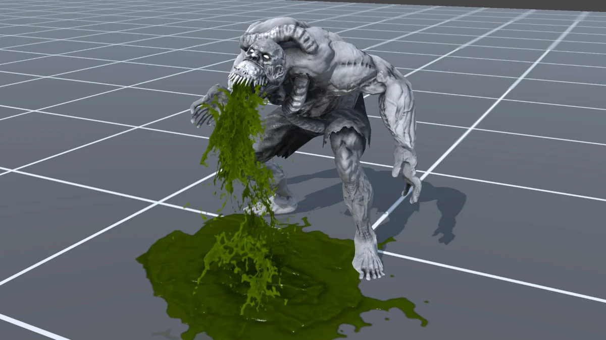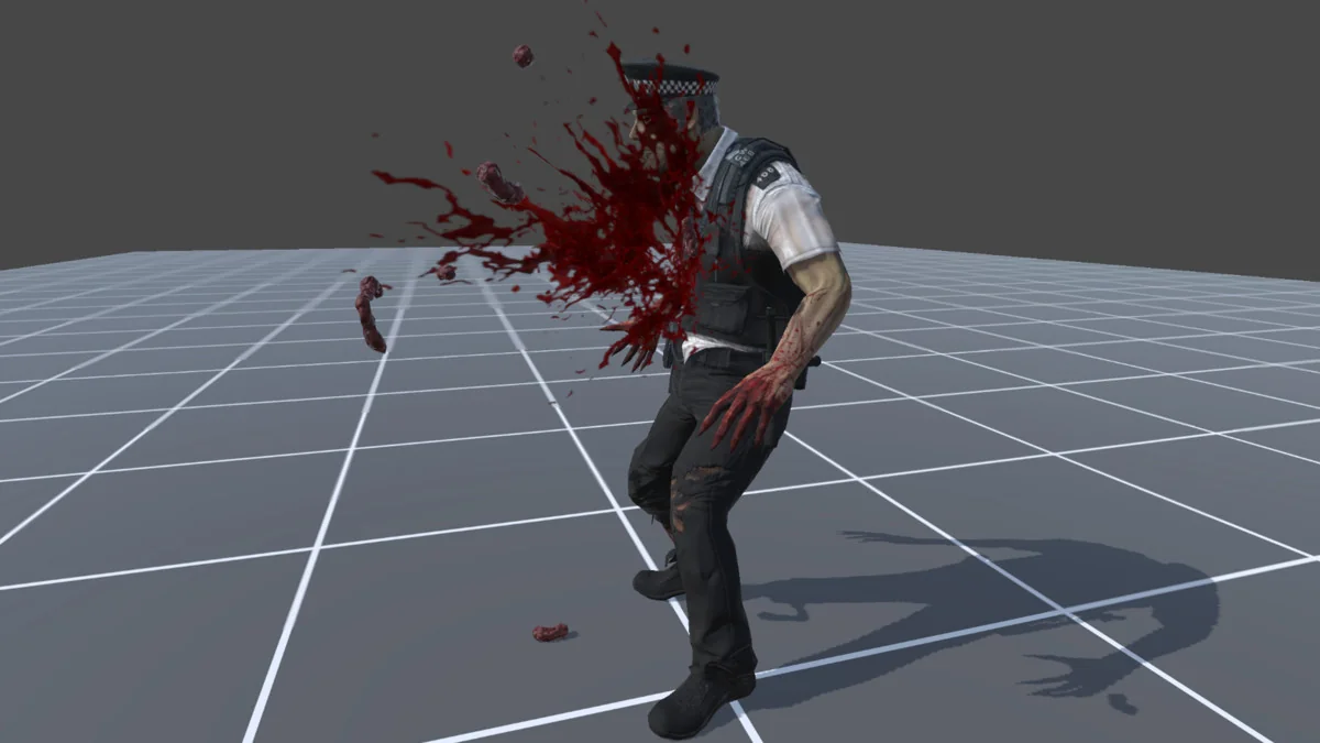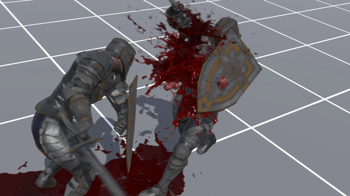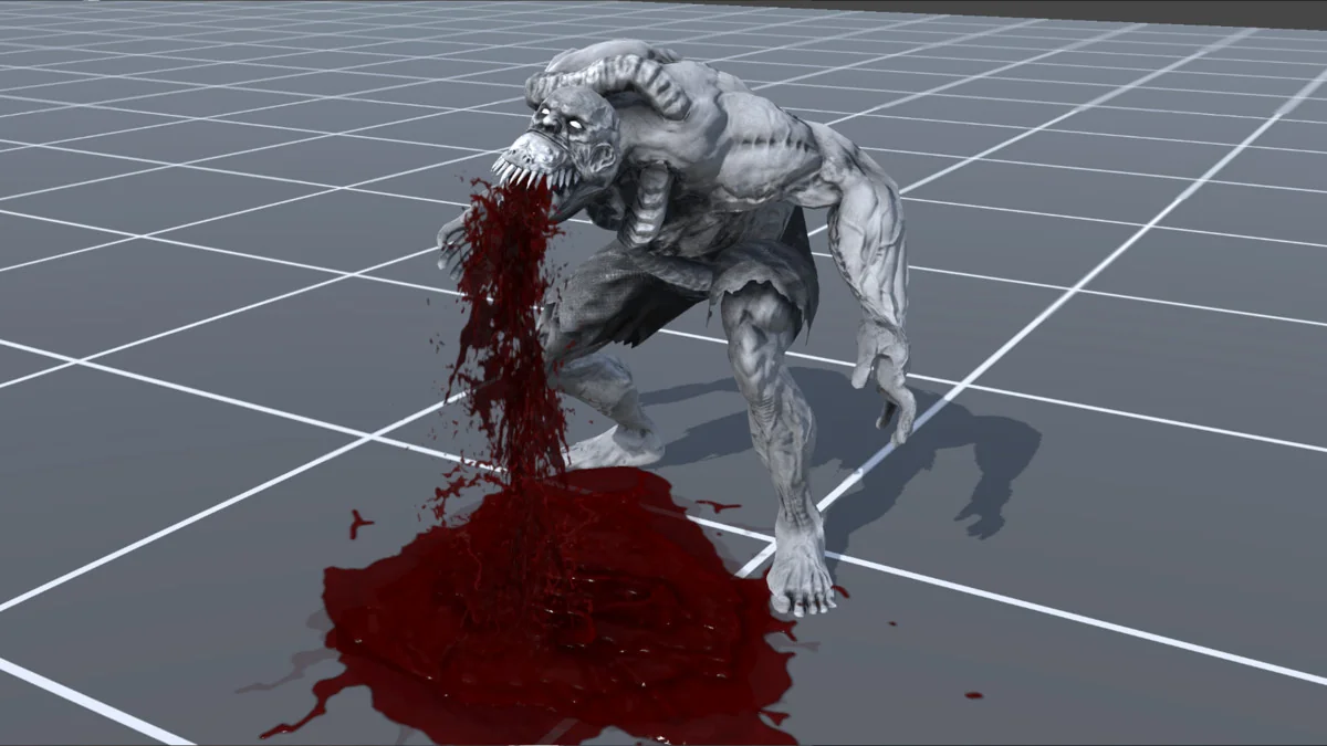 That range matters because the effects are not locked into one type of scene. Ambient blood decals can stay in the world as a trace of damage, while responsive combat VFX can appear at the exact moment a strike lands. The same pack can also support more direct close-up storytelling through the gut visuals, giving artists room to move between subtle damage indicators and more intense gore without switching to a different visual language.