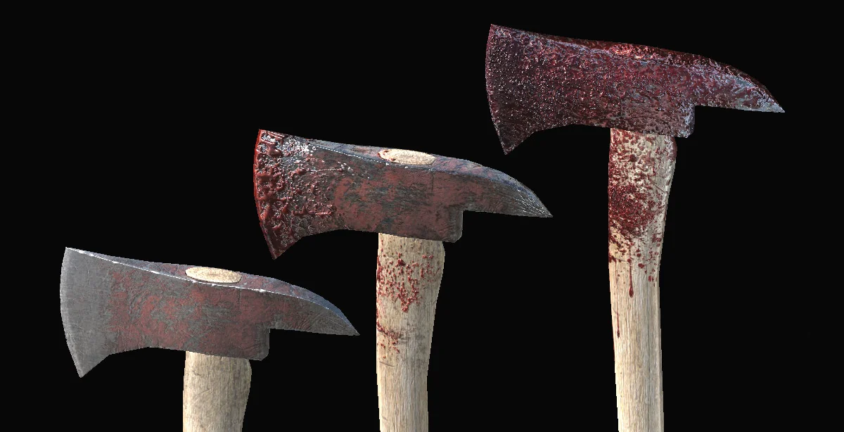 Given the worn appearance and the blood variants, this asset is primarily intended for projects requiring a specific atmospheric tone. It fits naturally into horror, thriller, or survival-action games. The dual texture variants provide a simple but effective way to handle environmental storytelling. A developer might use the axe as a static prop embedded in a door to suggest a previous struggle, or as a weapon that changes appearance as the player progresses.