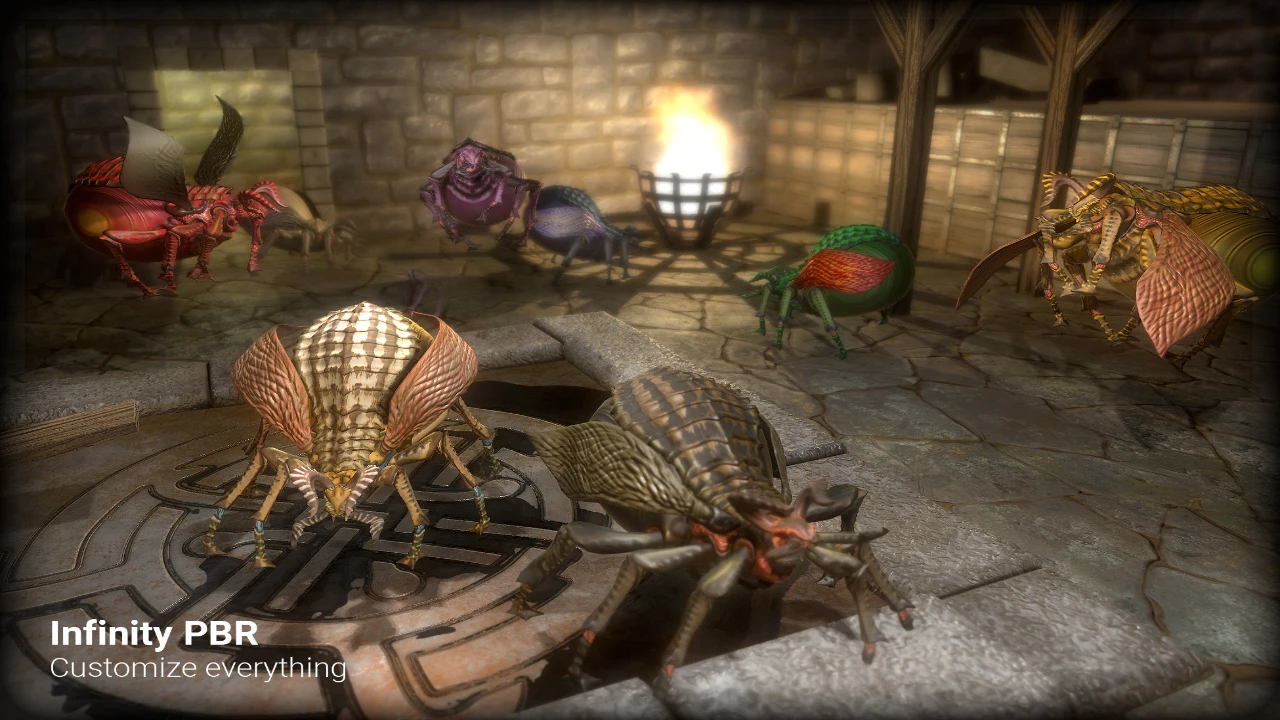 Bomber Bug Pack PBR is a highly customizable bug that explodes itself. Each section of the bug is a sub-mesh, allowing it to be turned on or off. You can take off the wings, the armor, the pincers or horns, or even turn it into a 4 legged bug if you so desired! Did I mention that it explodes??