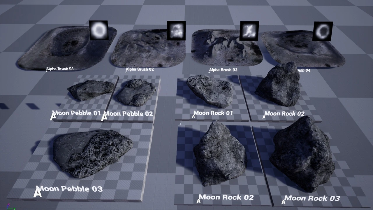 - Sculpt Realistic Craters with Alpha Brushes: Furthermore, you can sculpt your landscape with incredible artistic control. We include 4 unique lunar terrain brushes, derived from real-world crater impact sites. Use these alpha brushes to sculpt realistic, detailed craters and terrain features directly into your landscape in real-time.