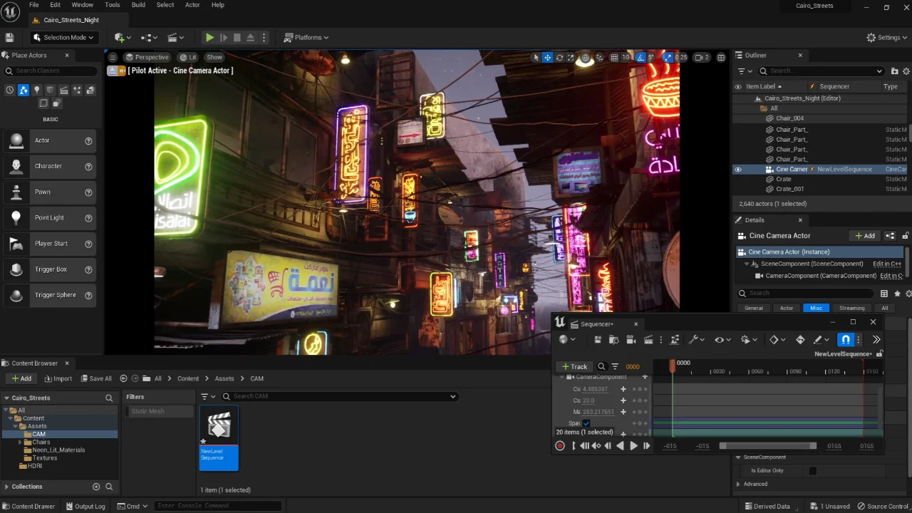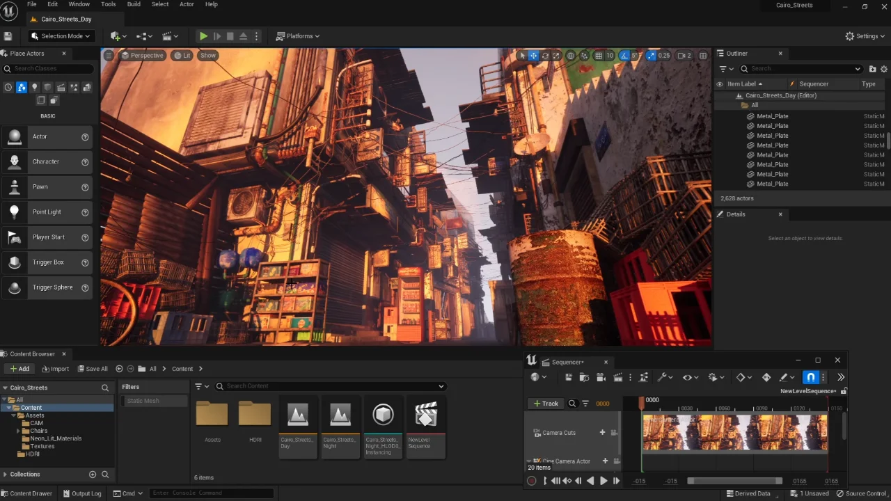 Unreal Engine 5 project with 2 levels(day and night) + working neon signs
