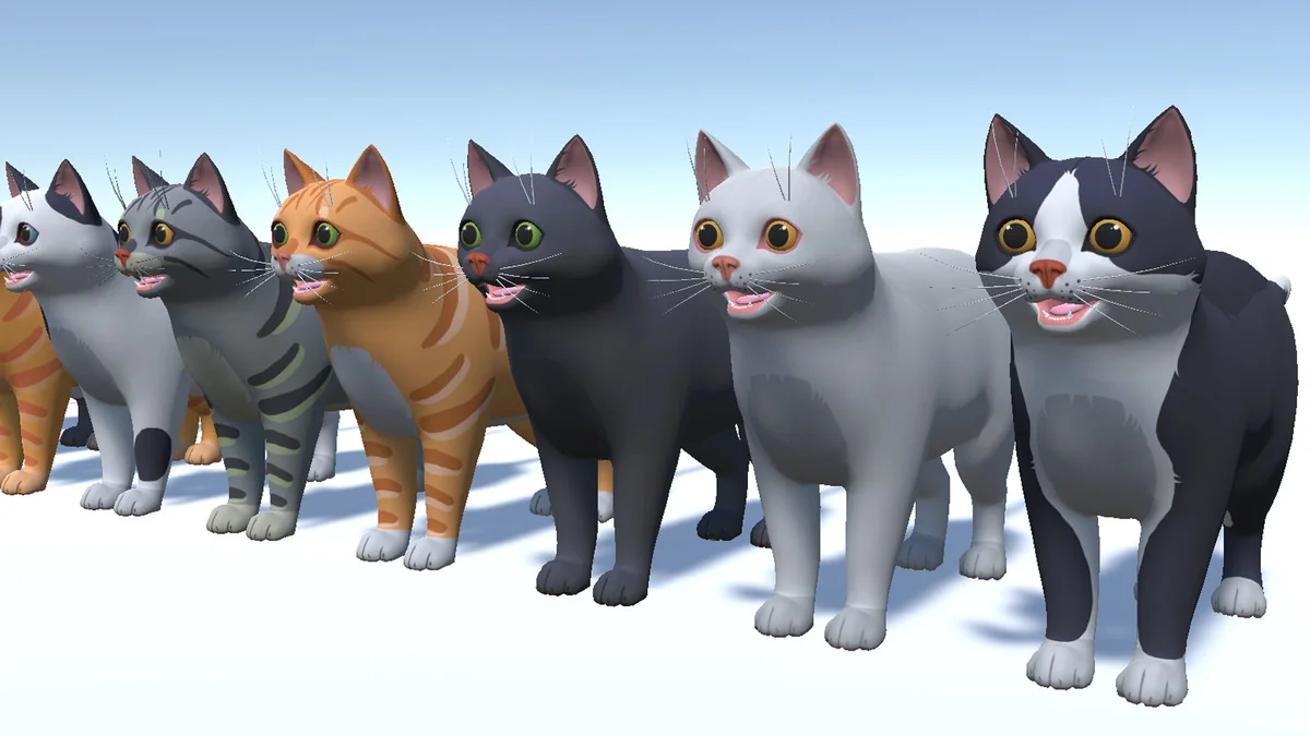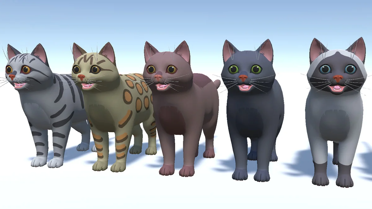 Each model in the Cartoon Cats pack features a professional setup with 50 bones and 8200 triangles. However, the developer also provides a separate mobile-friendly version with only 3000 triangles to ensure high performance. Consequently, this asset is optimized for both desktop and mobile platforms.