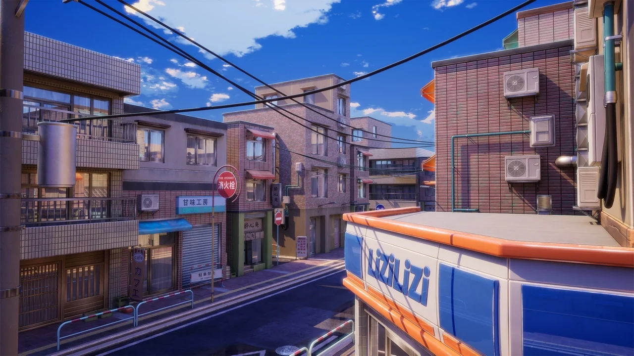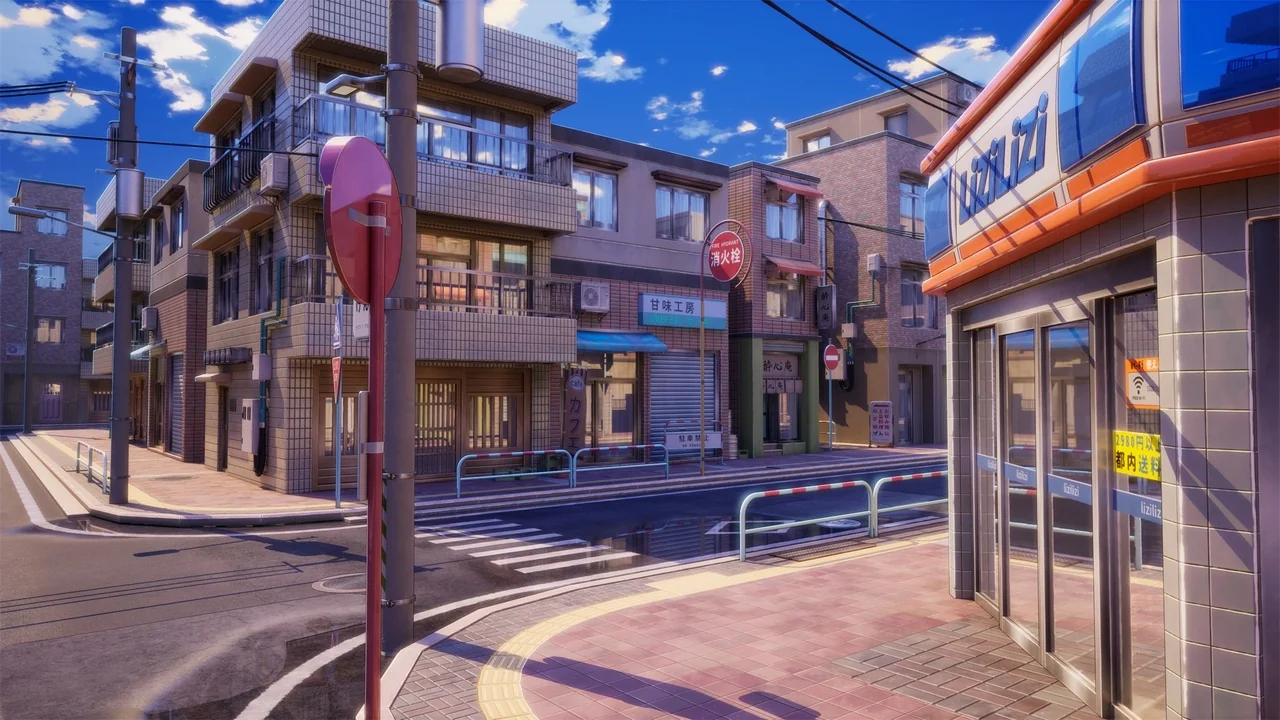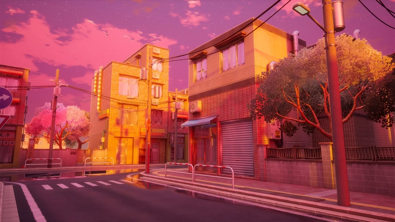 The street is not limited to a single lighting condition. It is a day-and-night environment, which means the same location can be shown across different moments of the day. A daylight version can support clearer visibility across the environment, while dusk and night versions can shift the same street toward a stronger atmosphere. That flexibility is useful when the location needs to be reused across shots or scene beats without losing visual consistency.