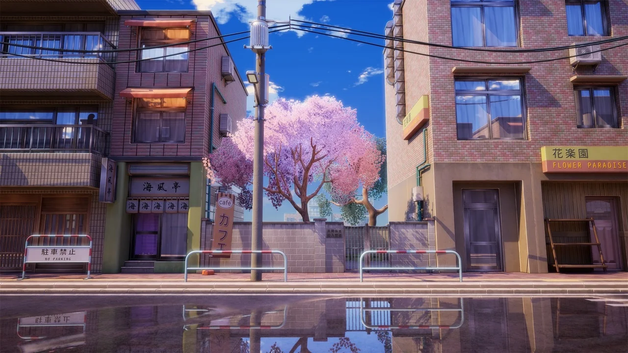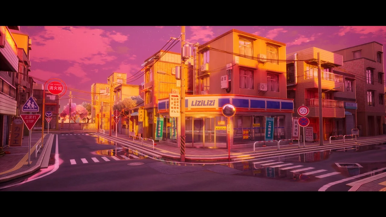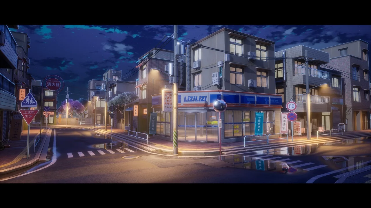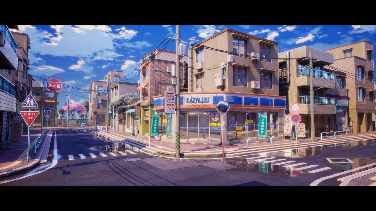 The street is not limited to a single lighting condition. It is a day-and-night environment, which means the same location can be shown across different moments of the day. A daylight version can support clearer visibility across the environment, while dusk and night versions can shift the same street toward a stronger atmosphere. That flexibility is useful when the location needs to be reused across shots or scene beats without losing visual consistency.