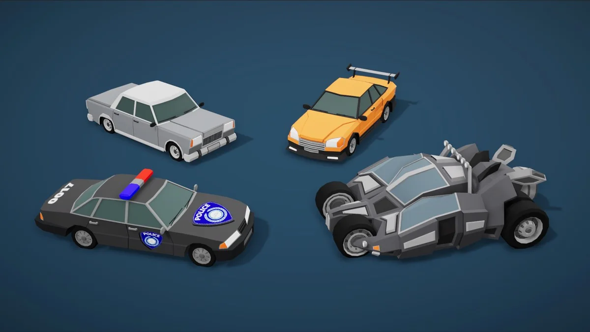 This modularity facilitates a range of technical implementations. For standard racing mechanics or arcade-style driving, the independent wheel meshes can be assigned to individual colliders or transform-based scripts. This setup ensures that the visual movement of the car—such as tire rotation and steering angles—can be accurately synchronized with the underlying game logic. Because the pack focuses on stylized, low-poly aesthetics, these mechanical animations remain performant even when multiple vehicles are active on screen simultaneously.