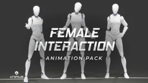 This Female Interaction Animation Pack consists of animations primarily aimed for character interactions or interactions with scenery objects but it can be used in other ways as well. The pack has 35 different animations ranging from dialog animations, gestures, idles, reactions, taunts, interaction with levers, doors, buttons and boxes or