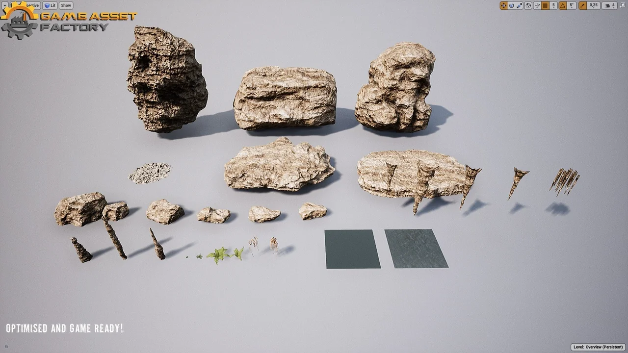 The core of this pack is its collection of totally modular rocks. You can translate, scale, and rotate these meshes in every way to build a complete cave system. Because they are modular, the rocks offer endless possibilities for unique layouts. Therefore, users can craft complex environments without needing unique individual assets for every corner. This flexibility ensures that no two caves need to look exactly the same.