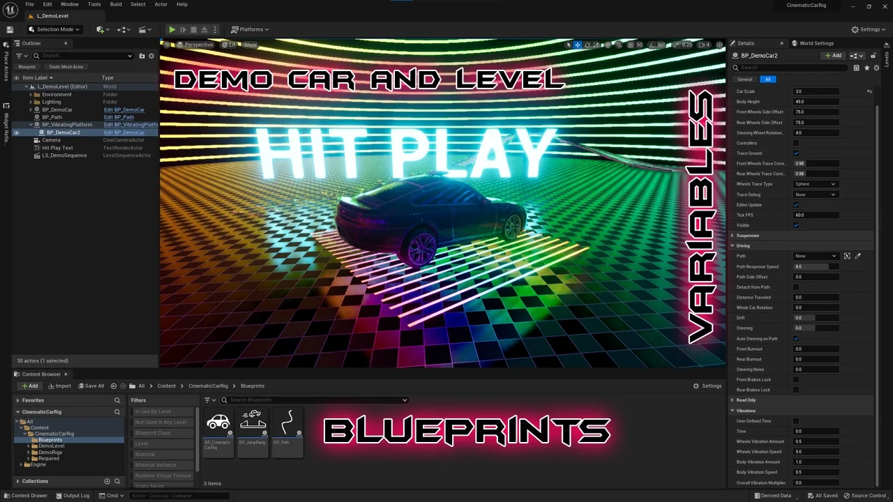 In conclusion, the Cinematic Car Rig (CCR) is an essential tool for any automotive artist working in Unreal Engine. It solves the common problems of physics-based animation by offering an editable, real-time, and highly customizable rigging system. Whether you are creating high-speed drifts or subtle cinematic movements, this rig provides the precision needed for professional results. By removing the need for constant re-recordings, it allows your creative freedom to remain the priority.