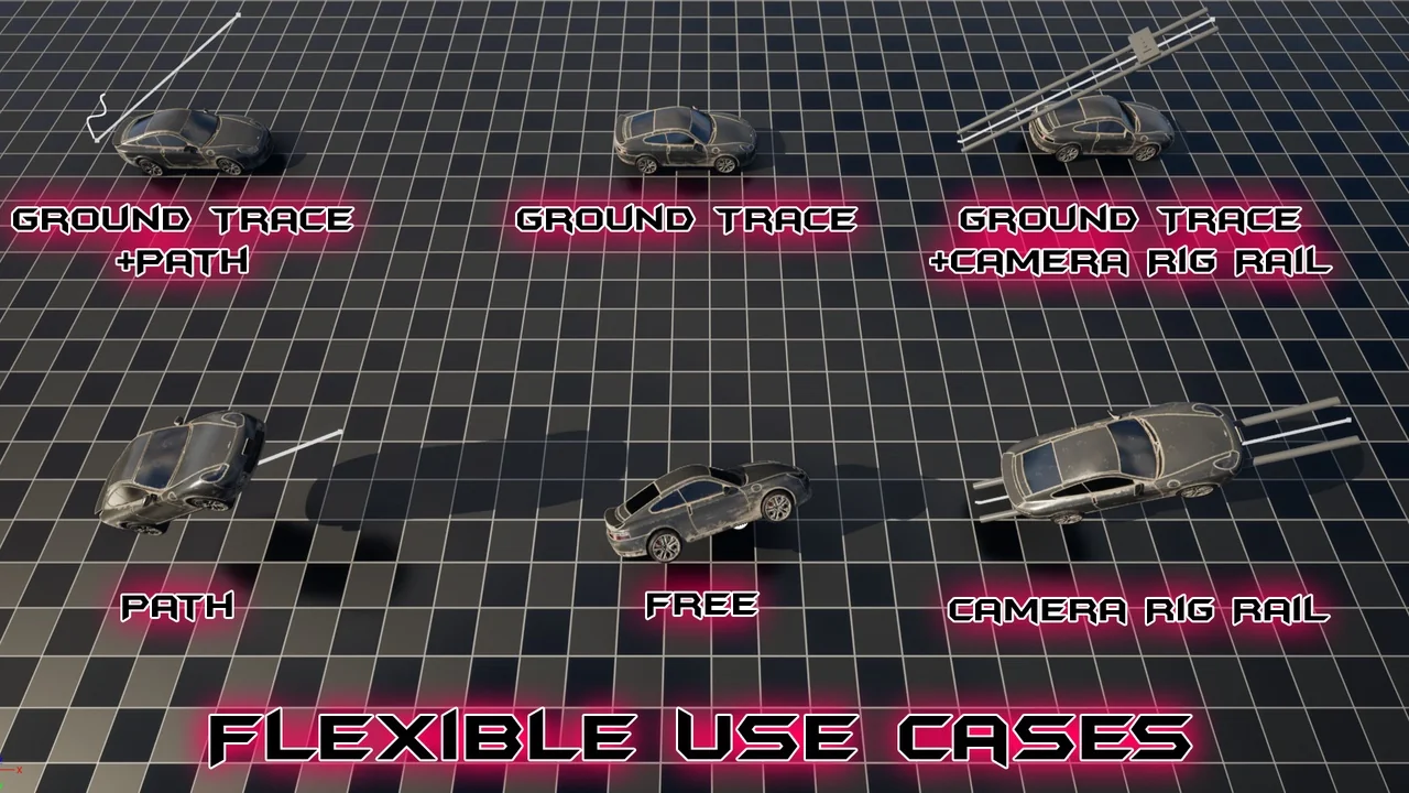 The Cinematic Car Rig (CCR) simplifies complex pathing through its dedicated Spline Path Blueprint. This feature allows you to snap spline points directly to the terrain for accurate placement. Additionally, the system supports auto-steering and realistic path navigation. If your scene requires a repeating sequence, the auto-loop feature triggers if the distance exceeds the spline length. You can also reverse the direction or loop the path with a single click.