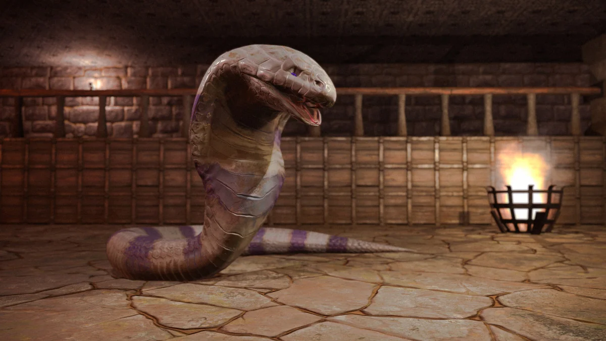This pack includes specialized animations to bring the creature to life. Specifically, it features “killer attack” and unique “spit” animations for combat scenarios. The snake slithers naturally on the ground during standard movement. Additionally, it includes an “alert” mode for defensive or predatory stances. These realistic movements ensure that the creature interacts convincingly with the player and the environment.