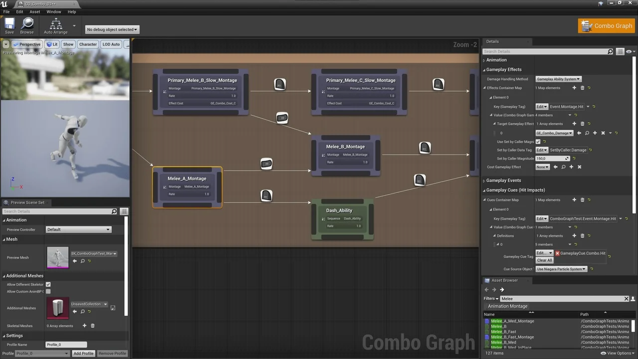 Just know that while you can use Animation Sequences directly within Combo Graphs (more information below), those are not properly replicated unlike Animation Montages. See the disclaimer section.