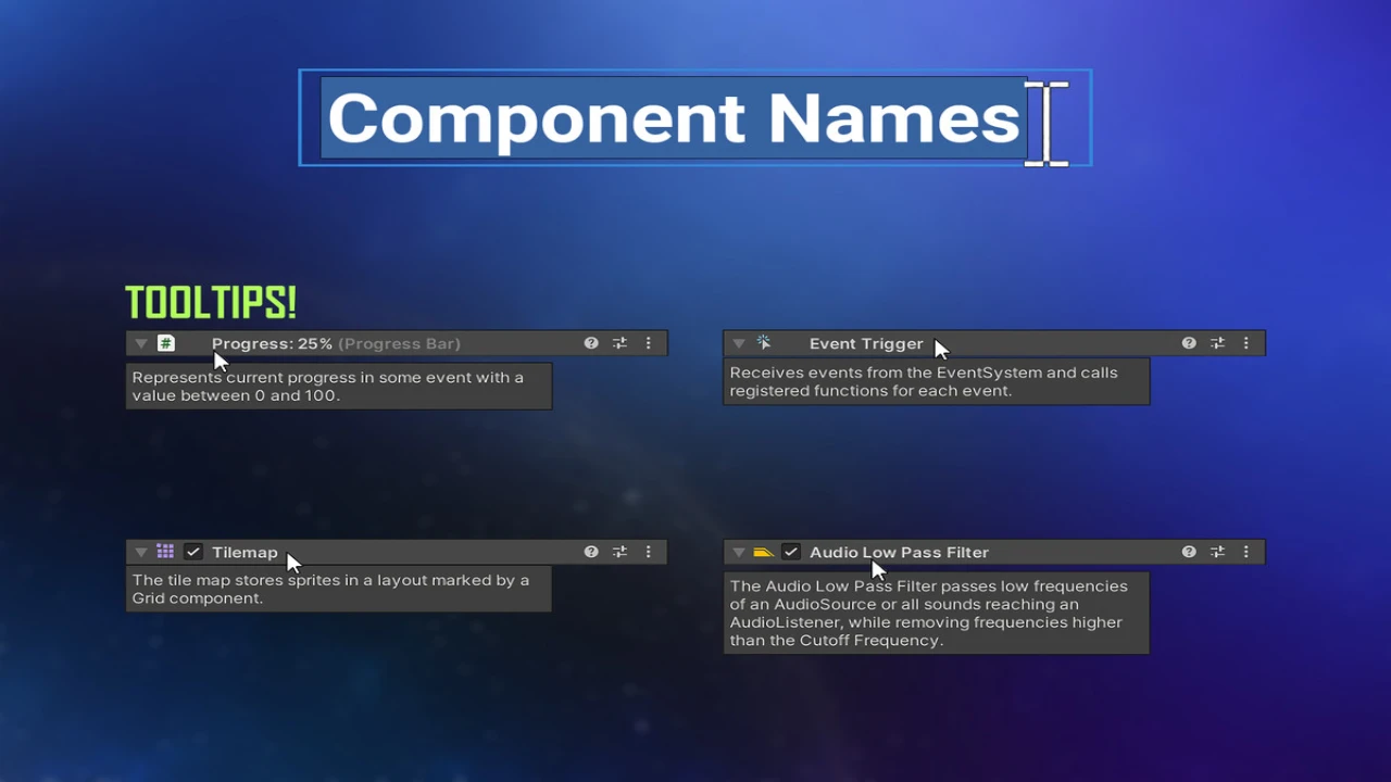 Component Names integrates seamlessly with the Inspector and makes it possible to rename components at will as if it was a native feature.