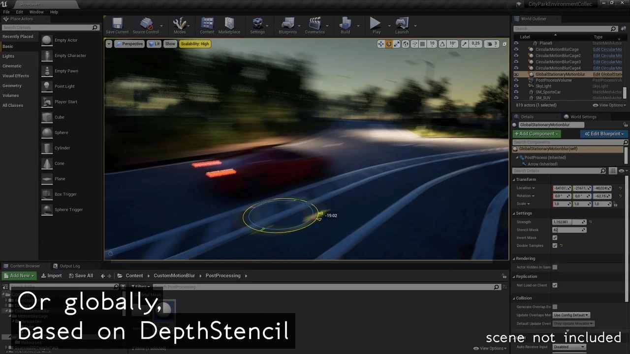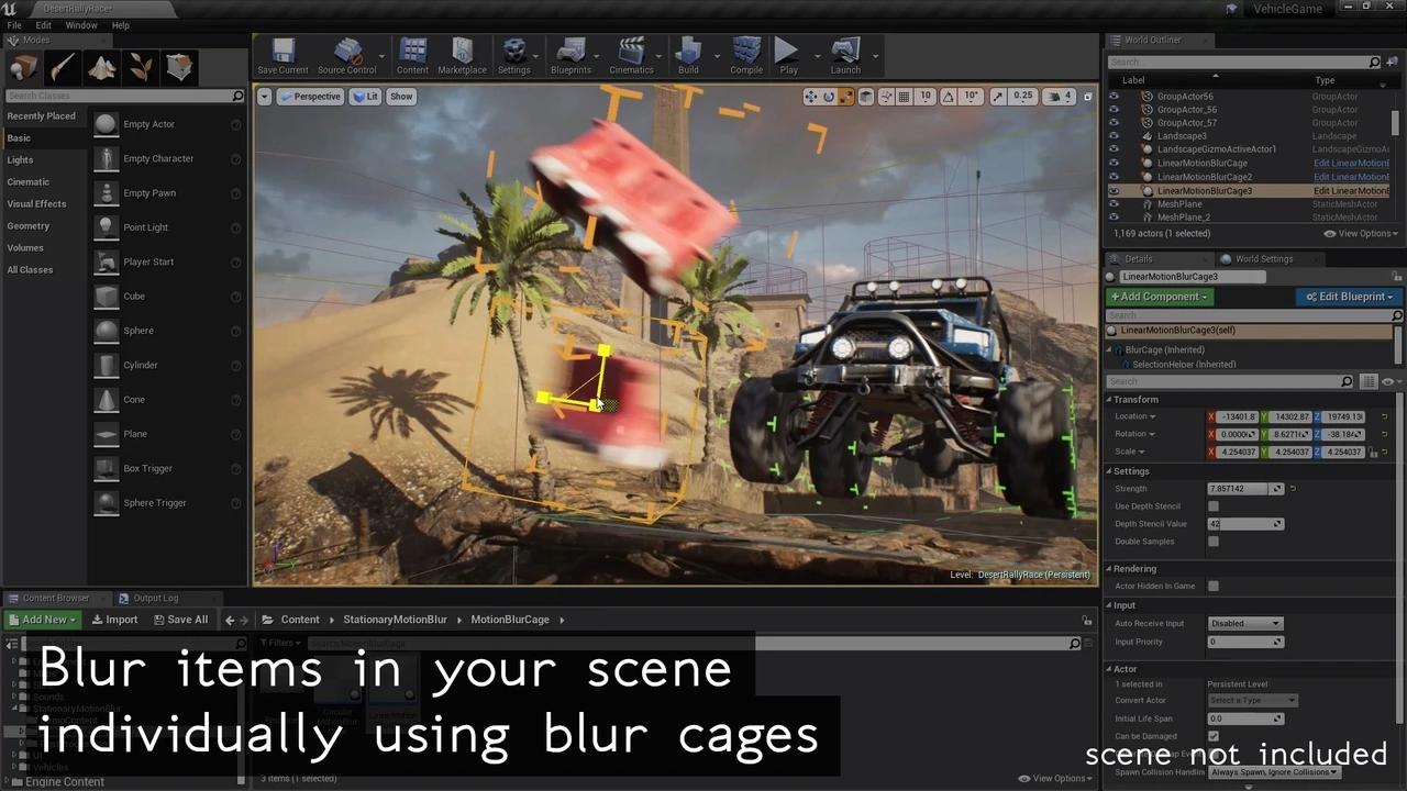 Ever wanted to make a single object look like it’s moving at incredible speed, even when the camera is perfectly still? Standard motion blur affects the whole screen, but what if you only want to blur a spinning wheel, a speeding projectile, or a futuristic machine? Introducing Custom Motion Blur, your solution for applying high-quality, artist-controllable motion blur to specific objects in your Unreal Engine scene.