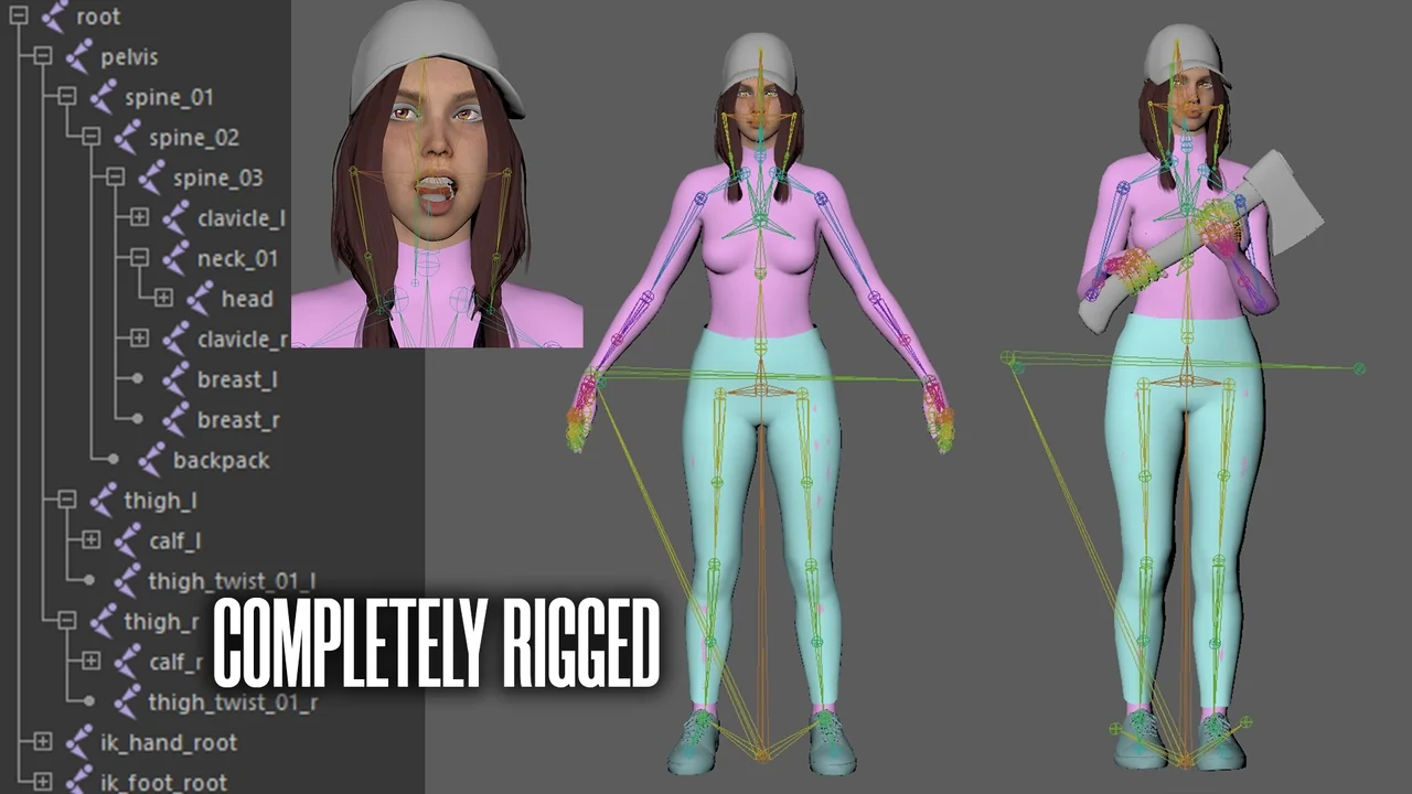 The model is fully rigged to the standard Epic Skeleton. This makes it compatible with a wide range of existing animations. Furthermore, the face, hair, and other specific areas are also rigged for extra realism. This setup allows for secondary motion that brings the character to life during movement.
