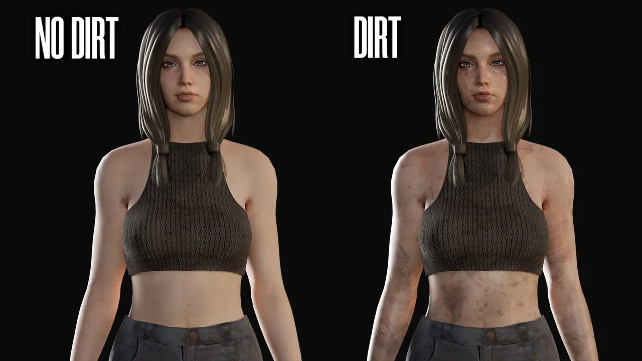 In contrast to static models, the modular nature of this girl character requires a bit of setup. For the best results, use the included MatID maps to fine-tune material properties. This approach gives you maximum control over the final look of the survivor in your specific environment.