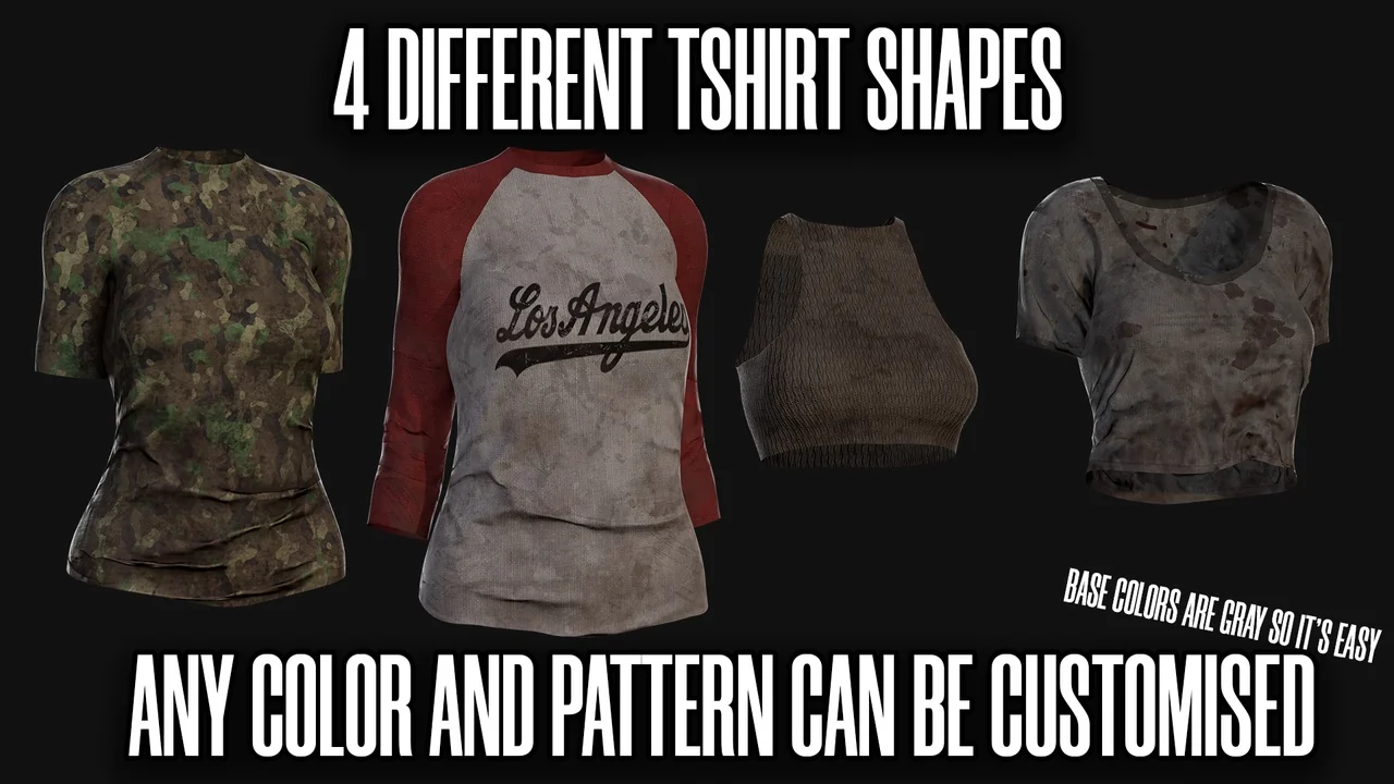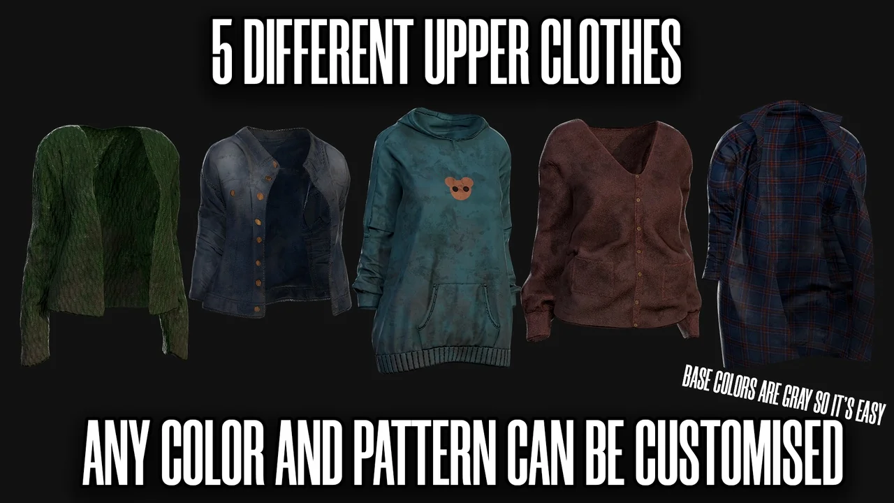 The base textures for the clothing are provided in a neutral gray. Therefore, you can easily change them to any color within your game engine. In addition, the asset includes removable prints like military patterns or urban designs. This allows for even more visual diversity without needing extra texture sets. Meanwhile, the character skin comes in two variations: a clean version and a dirt-covered version.