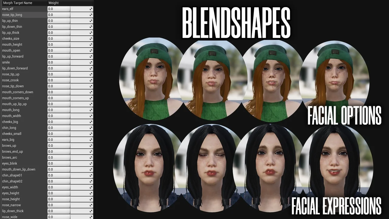 This package focuses on providing high-quality 3D assets for your pipeline. It provides modular skeletal meshes, materials, and blendshapes. However, please remember that this is a resource pack and not a pre-built blueprint system. You will need to integrate these meshes into your own character logic or animation blueprints.