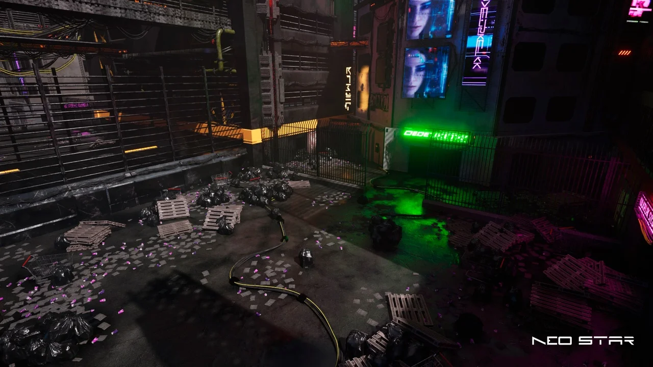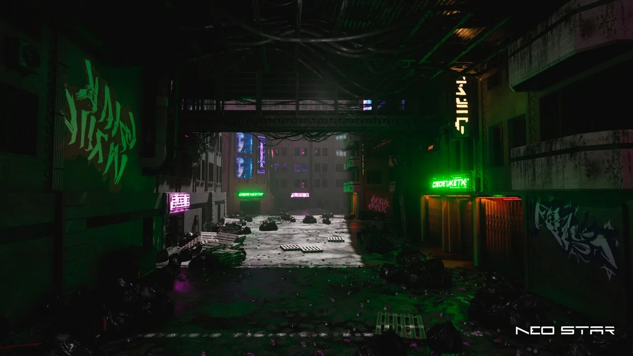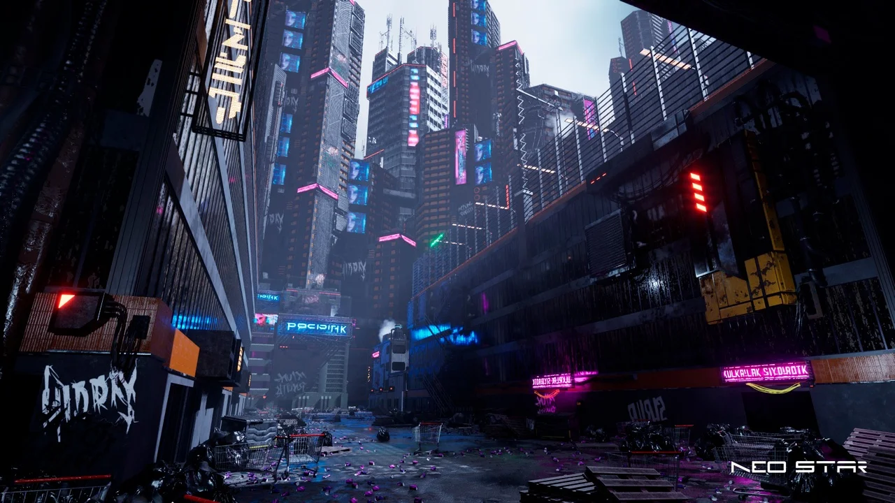 Explore the outskirts, where poverty and technological advancements collide. Navigate through narrow, garbage filled corridors, taking in the sights of massive buildings and flickering neon signs that illuminates the darkness. Whether you seek an immersive gaming experience, or a futuristic cinematic masterpiece, “Cyberpunk Outskirts” is the ideal asset to transport you into a mesmerizing world of urban desolation and neon-lit dreams.
