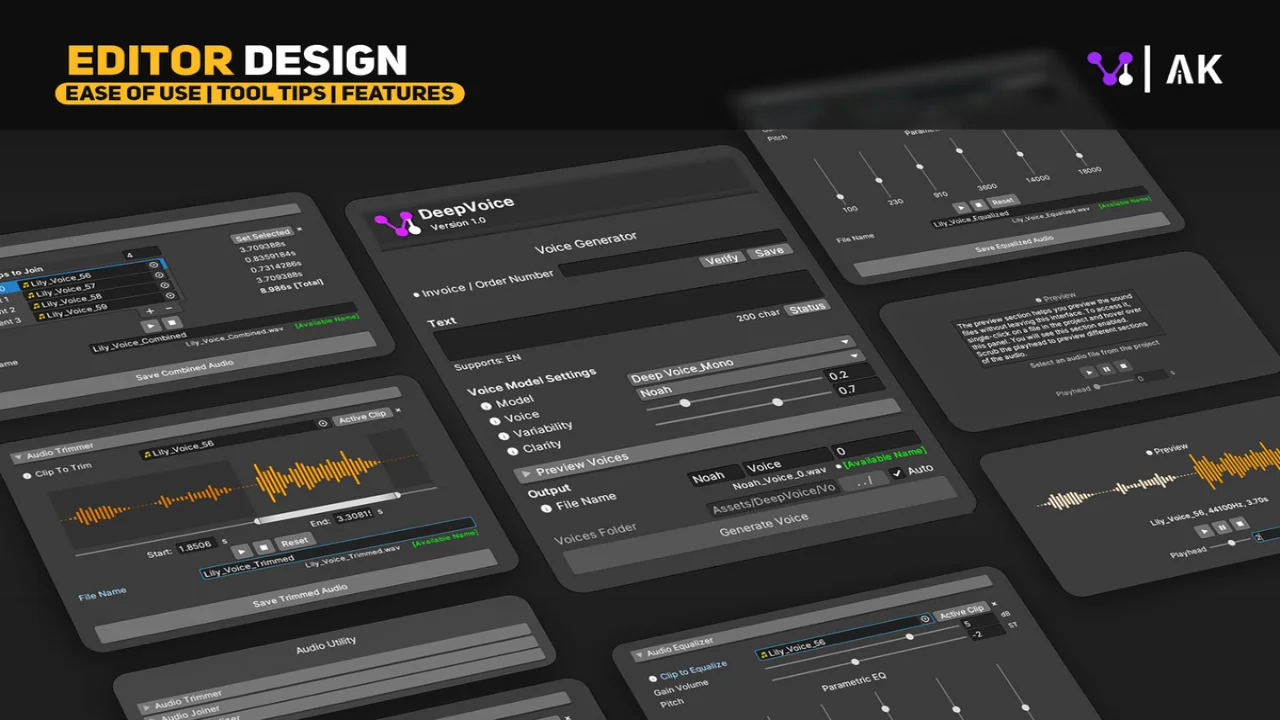 DeepVoice is an LAM (Large Audio Model) of networks and libraries that are capable of life-like voice generation through text using AI and deep learning made for Unity.