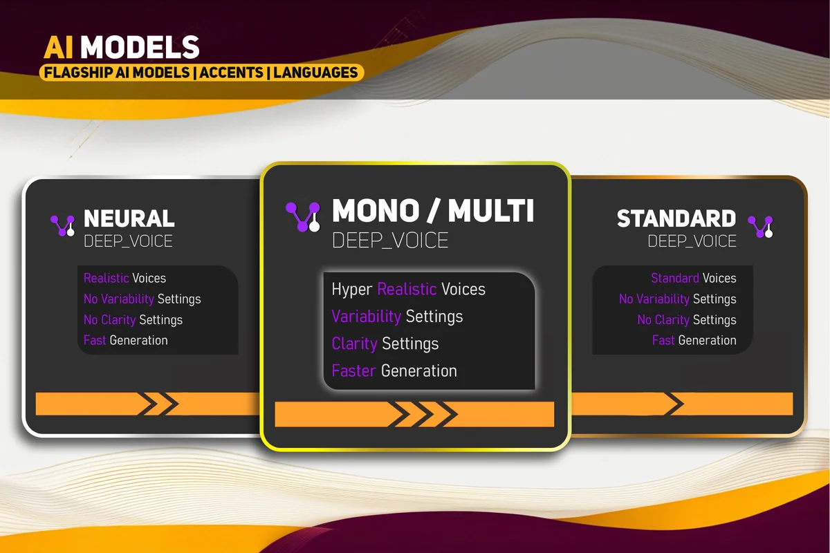 For projects requiring diverse linguistic support, the Multi model utilizes ElevenLabs as a backend service. This enables support for a wide range of languages, including Japanese, Spanish, German, Korean, French, Hindi, Italian, Portuguese, Polish, Arabic, Indonesian, Dutch, Turkish, and Filipino. With over 95 voices to choose from, developers can select specific vocal profiles that best suit their characters or narrative needs.