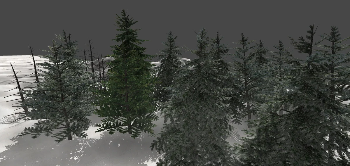 The core identity of the Detailed Pine Trees package lies in its approach to environmental movement. Unlike static vegetation, these trees utilize bone animations to create a more vivid and responsive atmosphere within a scene. By using a skeletal structure for the trees, the developer allows for movement that feels more integrated into the model’s geometry compared to simple procedural shaders. For developers or artists who require a more performance-optimized or stationary environment, the package specifically includes versions of the models without these bone structures. This dual-model approach ensures that the assets can be used in scenes where high-fidelity movement is necessary, such as foreground focal points, or in areas where static meshes are preferred to conserve processing overhead.