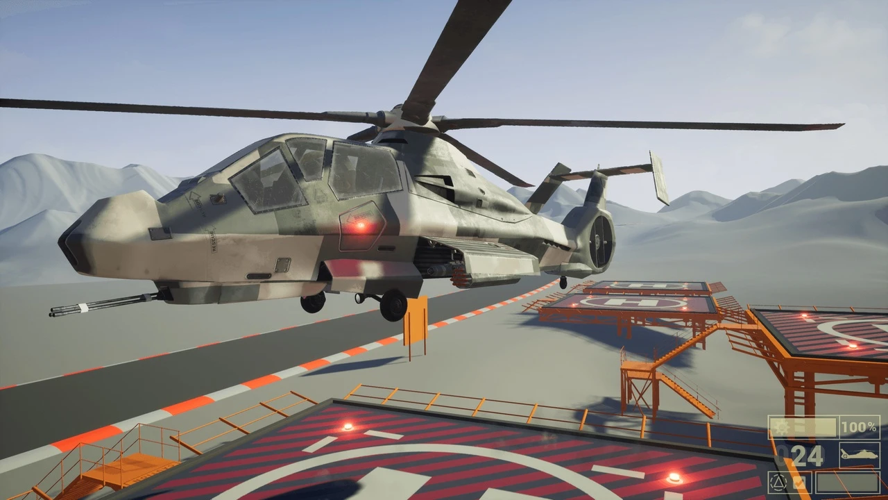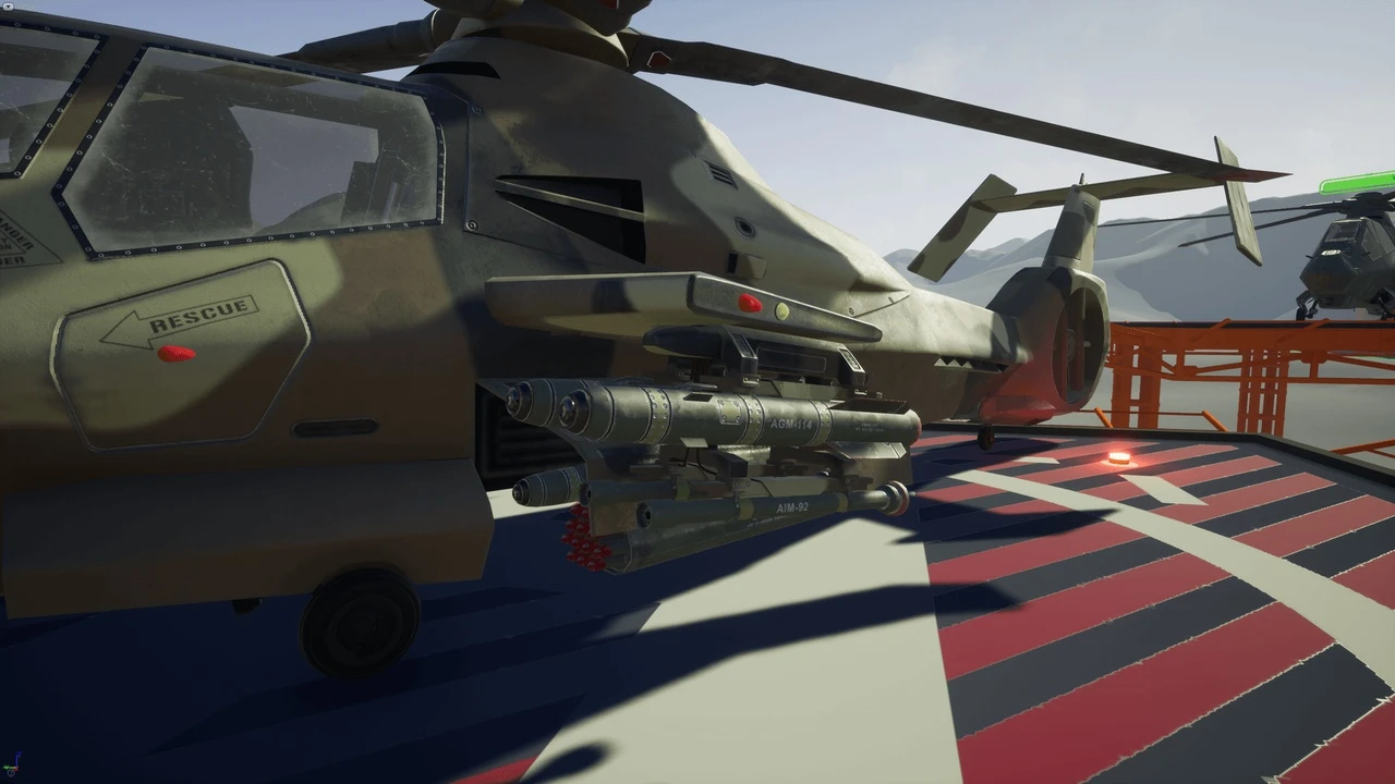 - Working turret, rocket pods, and guided Hellfire and Stinger missiles (ATG and AAM).