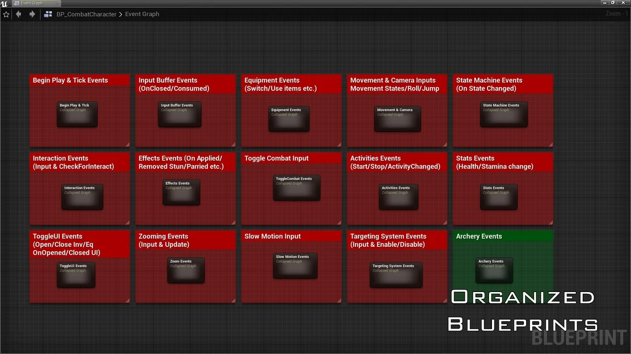 Technically, the logic is organized using a clear and commented structure based on Actor Components. This modular approach makes the system highly modifiable and extendable. Additionally, an input buffering system is included to ensure that combat actions remain responsive and smooth under various conditions.