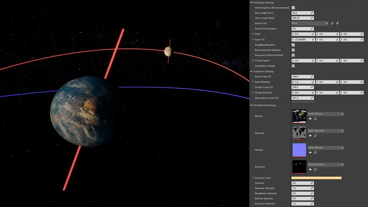 Furthermore, the simulation settings within the Earth Simulator are fully adjustable. You can set your own custom simulation parameters to achieve the desired visual or functional result. Because the entire system is modular, these simulations integrate seamlessly into broader space-themed environments. As a result, you have total control over the behavior and appearance of your planetary systems.