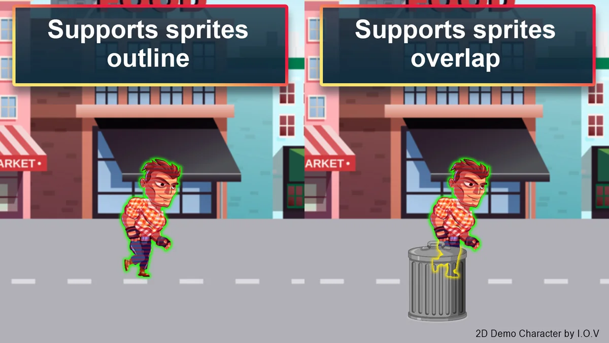 The support for 2D and 3D outlines keeps the tool from being limited to one type of asset. That makes it relevant for projects that mix interface-adjacent elements, gameplay objects, or scene objects that need a clear contour. The package also supports a variety of effects, including per-object outlines, multi-layer outlines, and semi-transparent outlines, so the final result can stay practical rather than overly uniform.