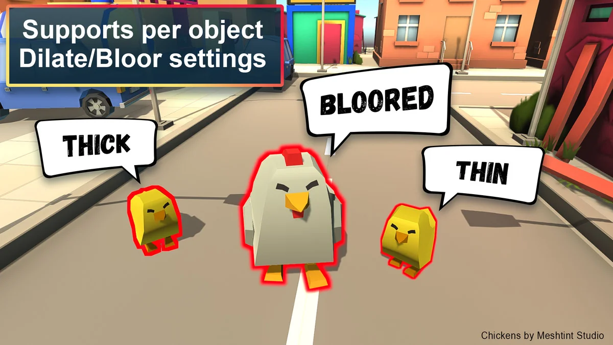 Per-object outline settings are one of the clearest implementation points. Instead of treating every outlined element the same way, the system supports object-level control so different items can carry different outline treatments. Multi-layer outlines are also included, which makes it possible to stack outline effects when a single edge treatment is not enough.