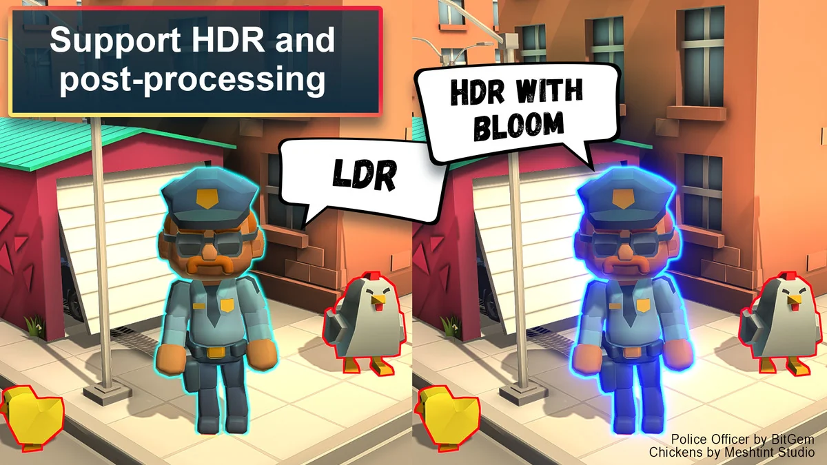 Support for both HDR and LDR is included, so the effect can sit inside projects using either rendering range. Render Graph is fully supported as well, which matters for teams working with that Unity feature in their rendering pipeline. The overall emphasis is on keeping the effect compatible with modern Unity rendering setups while maintaining high performance.