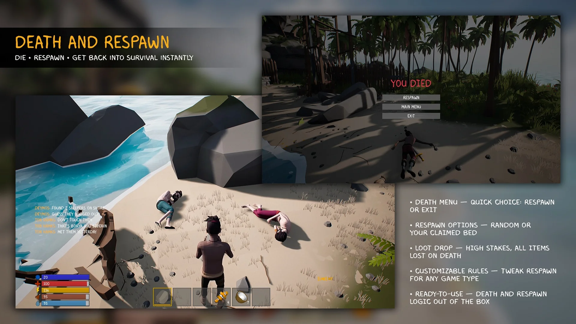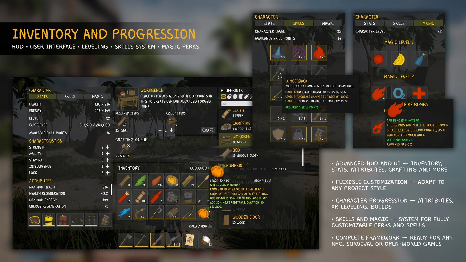 Combat in Easy Survival RPG V5 is highly versatile. It includes melee, firearms, archery, and spells. Moreover, you can use throwables, traps, and explosives. The template also features ability and damage pipelines for deep customization. Building systems use modular snapping for ease of use. You can create destructible structures with repair and upgrade options. Furthermore, the crafting system is queue-based. It manages inventory, durability, and dynamic loot spawning.