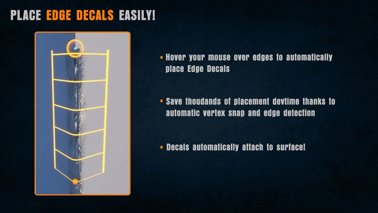 Edge Decal Tools 1.2 is an essential resource for environment artists, level designers, and technical artists. By automating the placement of edge and mesh decals, it eliminates repetitive tasks without sacrificing quality. Whether you are working with clean meshes or poorly aligned geometry, this tool ensures a polished and professional finish for your Unreal Engine projects.
